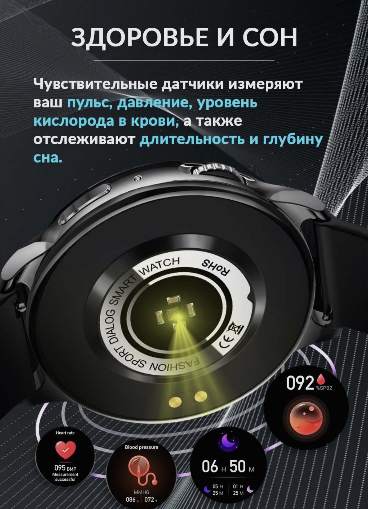 Мониторинг: Усвоения калорий, Сердечного ритма, Сна, Физической активности