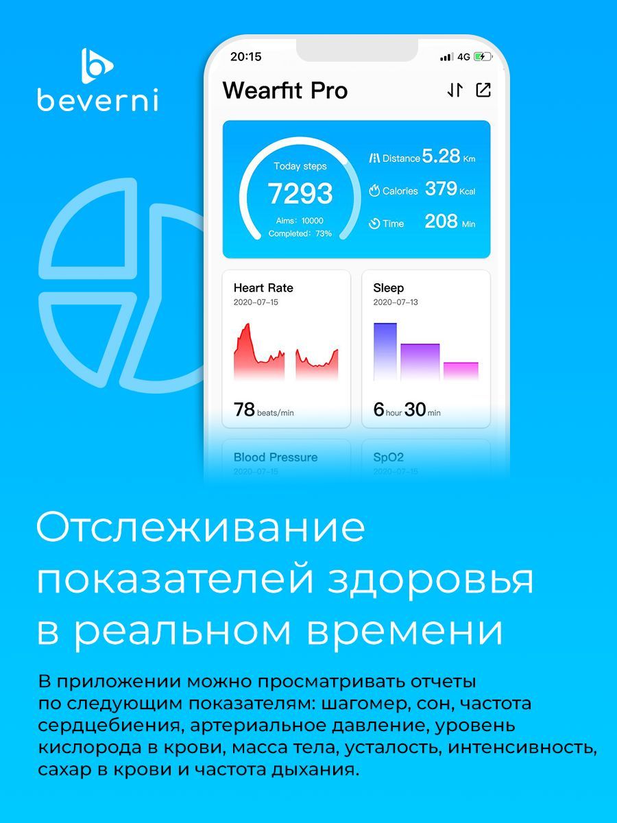 Мониторинг: Усвоения калорий, Сердечного ритма, Сна, Физической активности