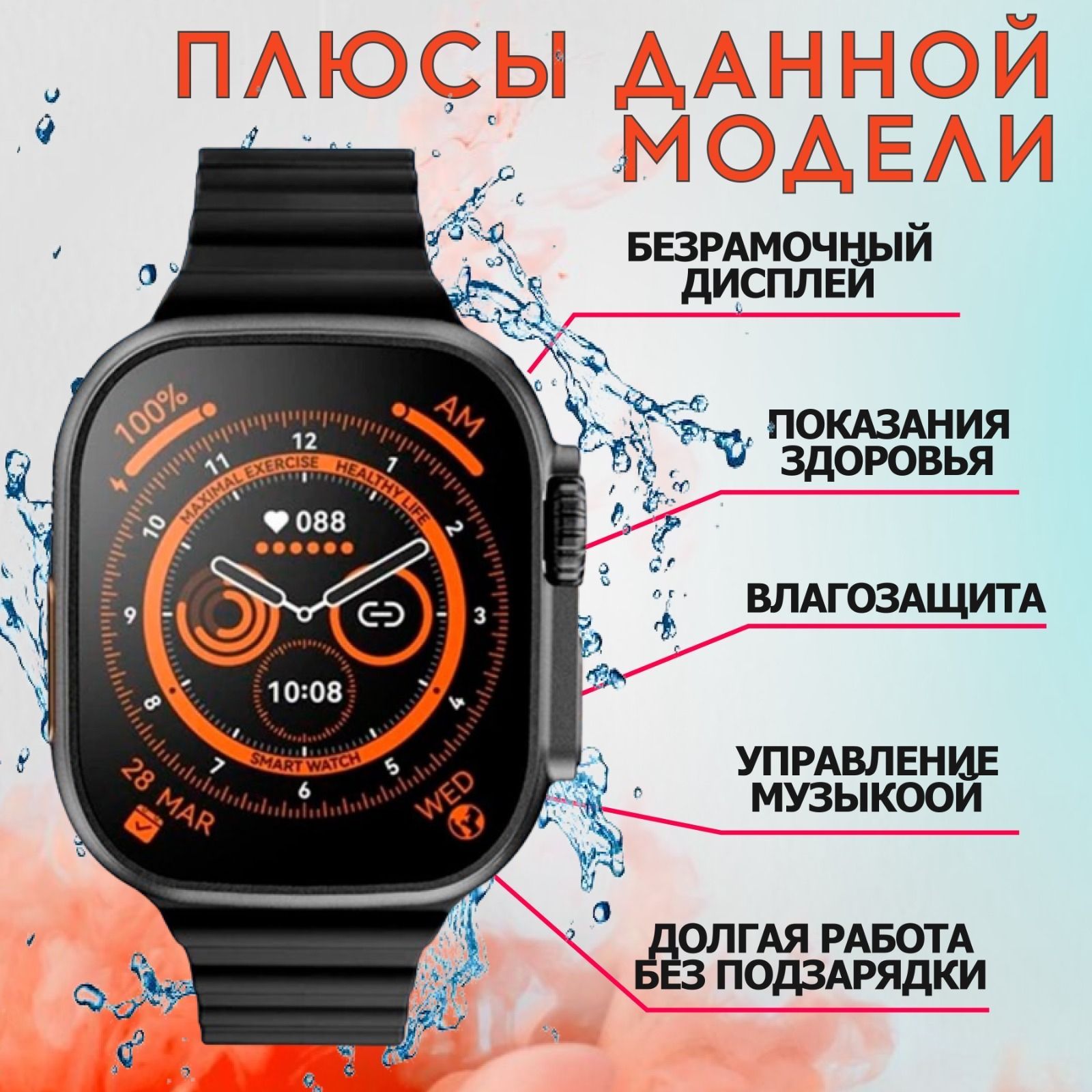 Описание: Смарт часы Т800 ULTRAСовременные смарт часы представляют собой устройства, которые помогают нам оставаться на связи, отслеживать свои показатели активности, получать уведомления и многое другое. Несмотря на то, что они изначально были разработаны для использования спортсменами, такой фитнес браслет становится все более популярными среди мужчин и женщин. Это связано с тем, что часы электронные на руку предлагают широкий спектр функций и удобств, которые делают их незаменимыми в повседневной жизни..ПОдной из ключевых особенностей чисов ручных является их квадратный экран с диагональю 49 мм. Такой дисплей обеспечивает отличную видимость и позволяет пользователю легко взаимодействовать с устройством. Благодаря большому размеру показатели на экране отображаются ярко и четко, что делает их легко читаемыми даже при ярком солнечном свете. Взрослым людям, особенно тем, кто активно занимается спортом или ведет здоровый образ жизни, часы мужские водонепроницаемые противоударные предлагают ряд полезных функций.Например, они оснащены встроенными датчиками, которые могут отслеживать активность пользователя, включая шаги, пульс, сон и даже уровень стресса. Эти данные помогают пользователям контролировать свое здоровье и принимать меры для его улучшения. Одной из самых популярных функций smart watch является возможность получать уведомления о входящих звонках, сообщениях и событиях в календаре. Таким образом, вы всегда останетесь на связи и не пропустите важный звонок или встречу.Кроме того, фитнес часы женские позволяют отправлять сообщения и совершать звонки прямо со своего запястья, что особенно удобно, если вам неудобно доставать телефон. Также смартчасы предлагают возможность контролировать музыку и использовать их в качестве пультов управления ваших смарт-устройств. Вы можете переключаться между песнями, регулировать громкость и даже управлять воспроизведением видео прямо со своего запястья. Это особенно удобно, если у вас нет под рукой смартфона или планшета. Сенсорные чесы также могут быть отличным спутником для путешествий. Они могут отслеживать ваше место нахождение, предлагать подробные карты и навигацию, а также предоставлять информацию о погоде и местных достопримечательностях. Одним из важных аспектов использования смарт часов для андроид является их совместимость с другими устройствами. Такие smart-часы могут быть легко синхронизированы с вашим смартфоном или планшетом, что позволяет передавать данные и получать уведомления на ваших умных устройствах.
