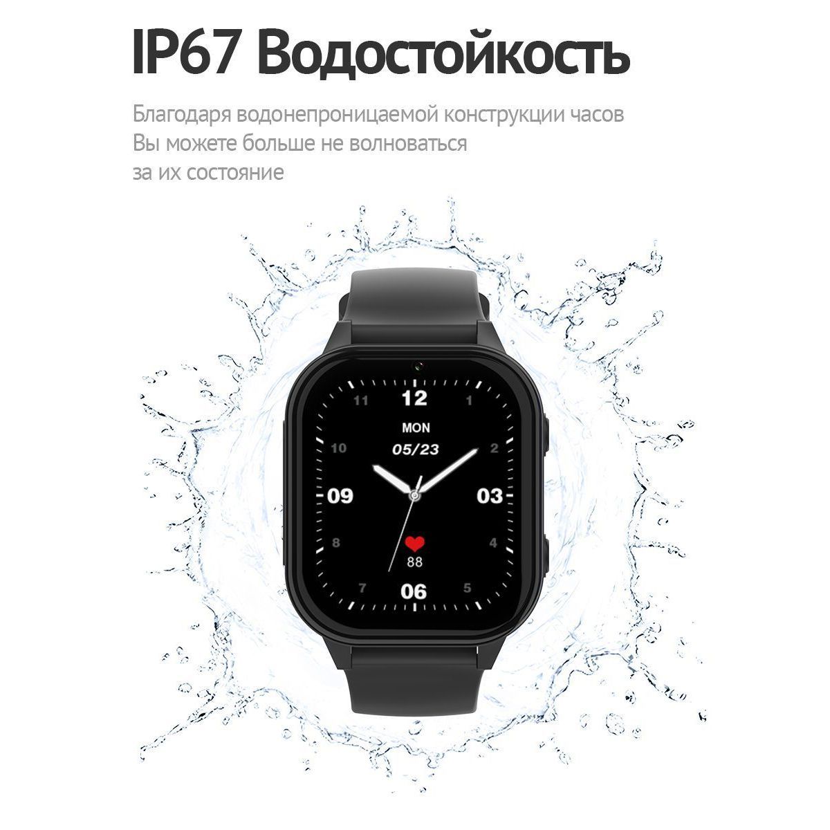 ·         Водонепроницаемость стандарта IP67* (можно не беспокоиться, когда ребенок моет руки или попал под дождь). Часы надежно защищены.