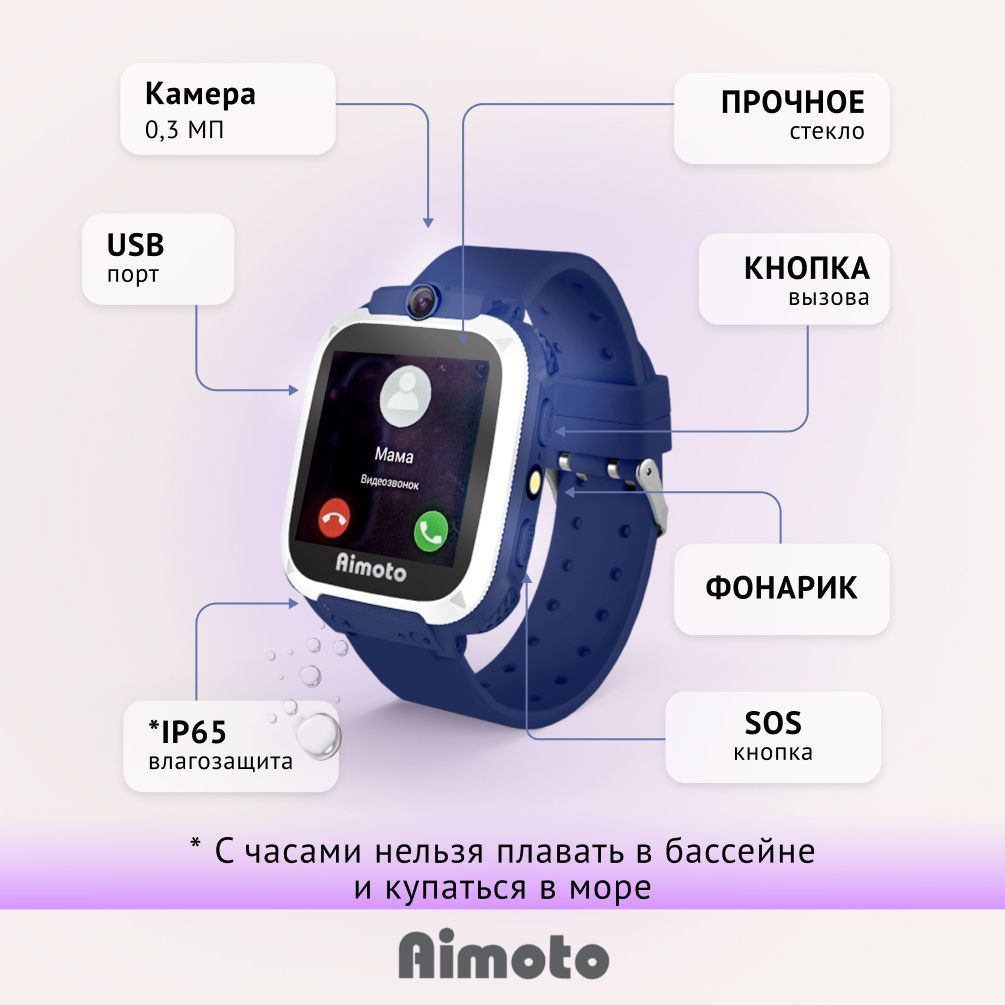 Умные часы для детей Aimoto Element 2G, | оплаченная на год сим-карта в комплекте|, LBS геолокация, звонки, кнопка SOS, голосовой чат, 38mm, Синий