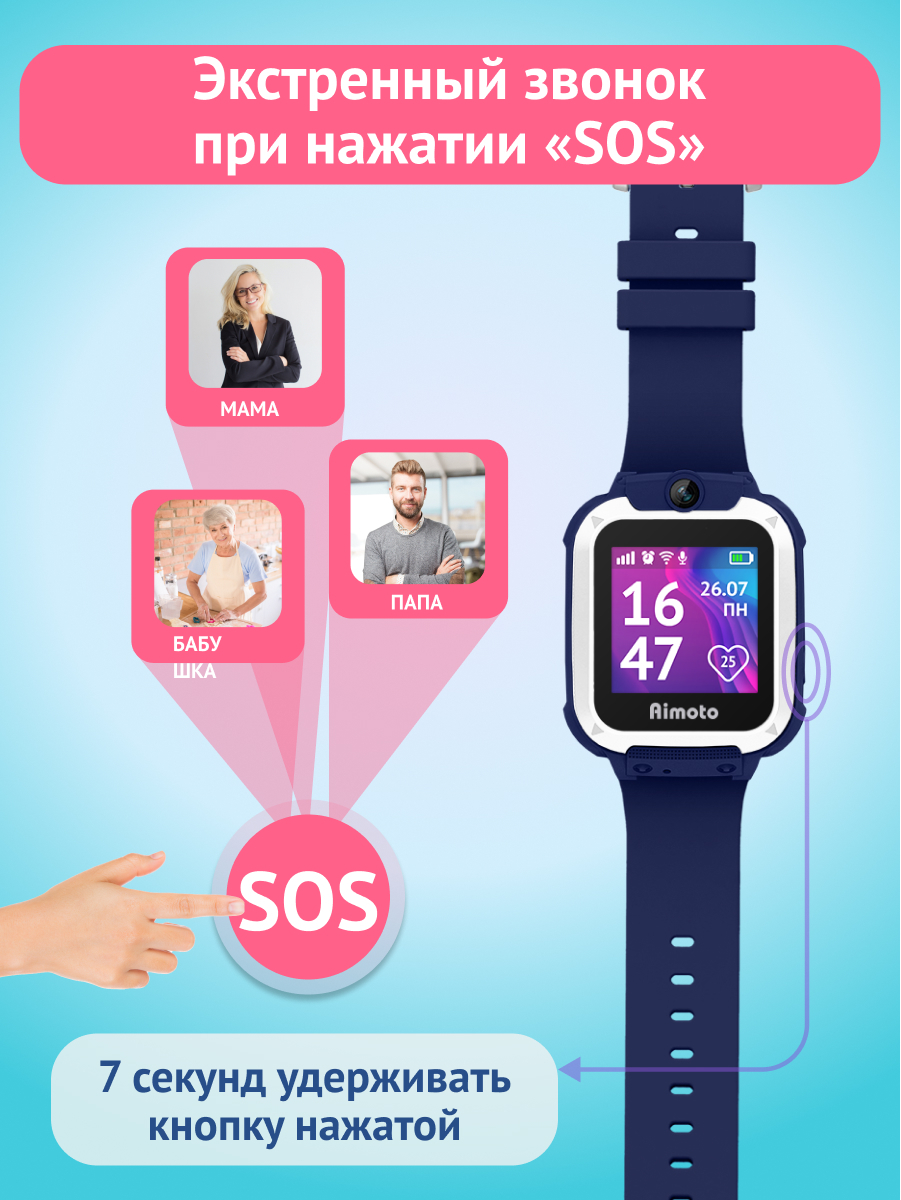 • Aimoto Element - часы-телефонБлагодаря часам ребенок всегда на связи. В этой модели только самые нужные функции-телефон с записной книжкой на 10 номеров, "белым списком", кнопкой SOS, функцией аудио и фото мониторинга, определением