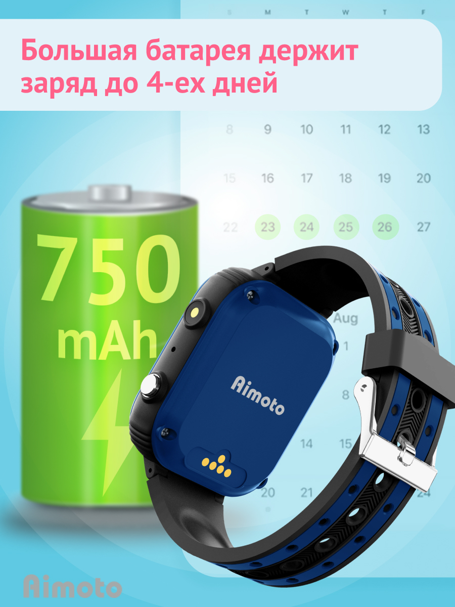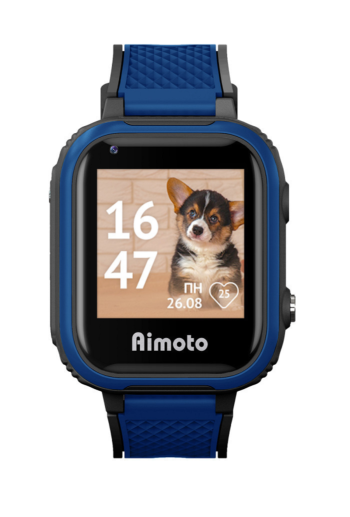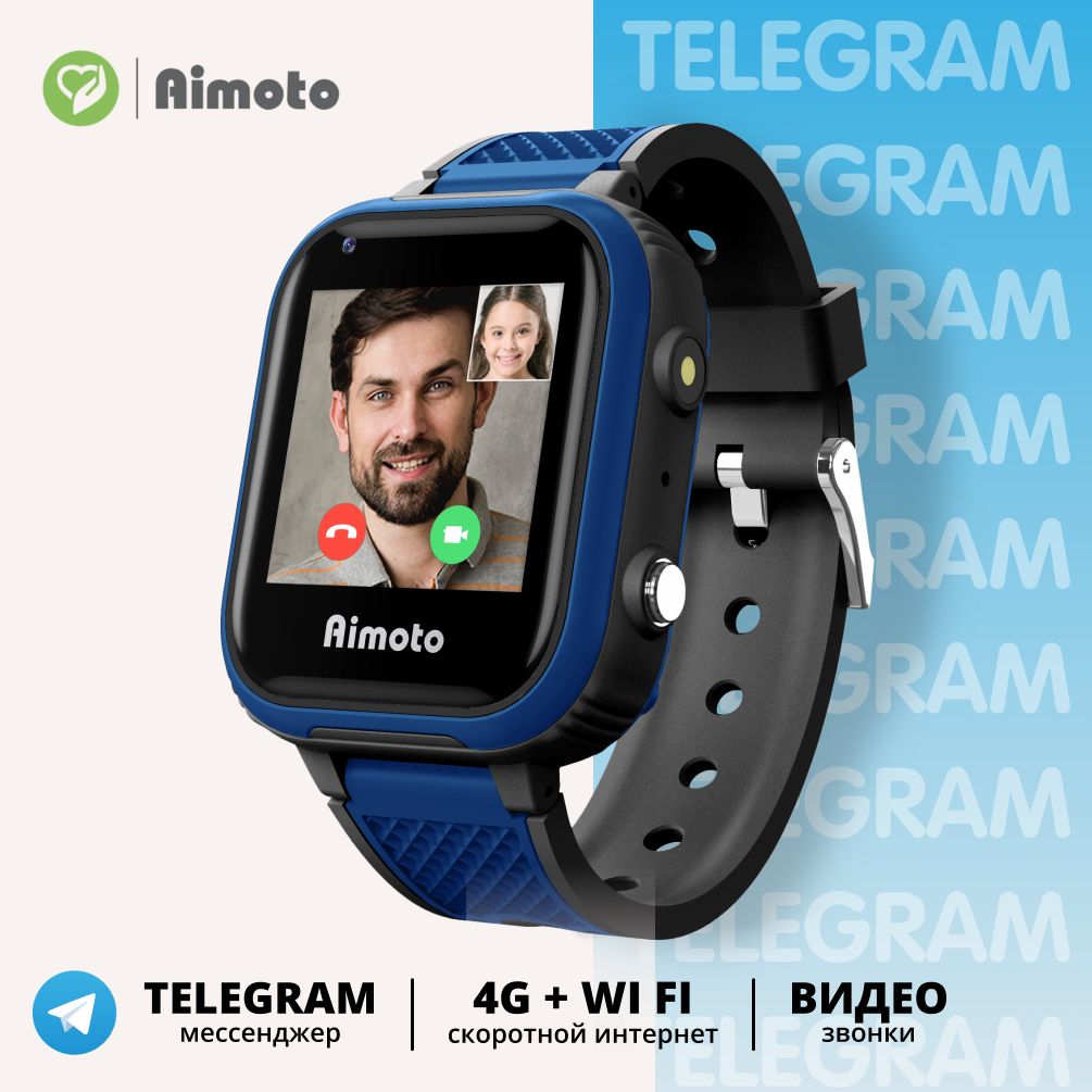 Умные часы для детей Aimoto Indigo 4G, видеозвонок GPS геолокация, WiFi, мессенджер Telegram, Сине-черный