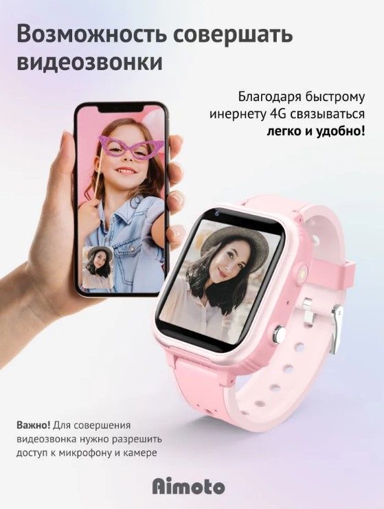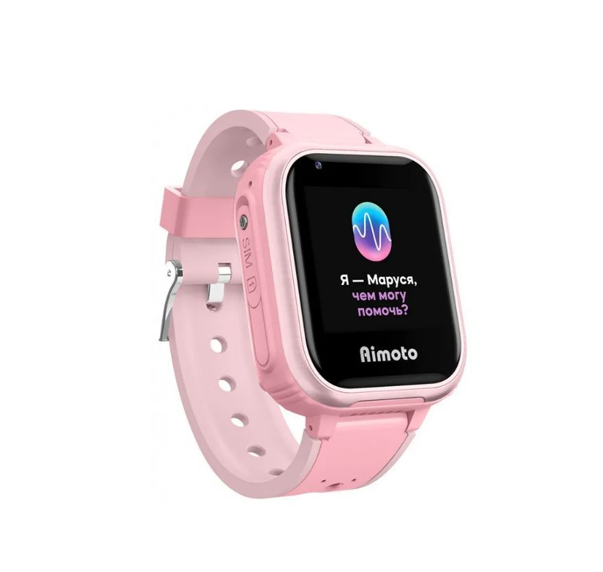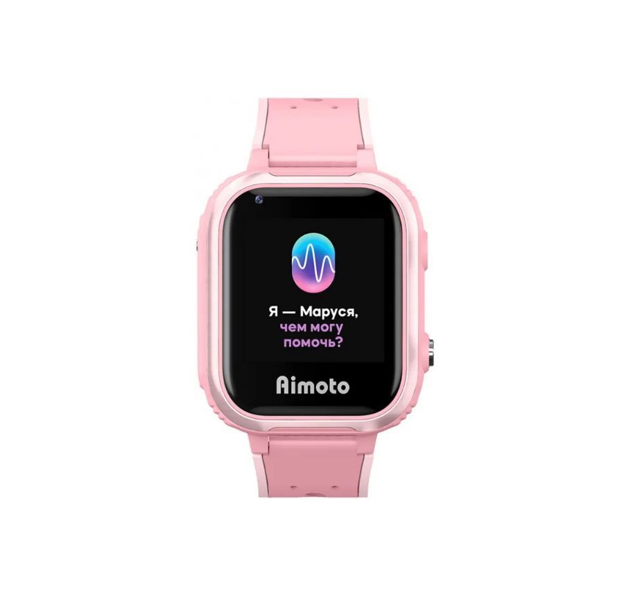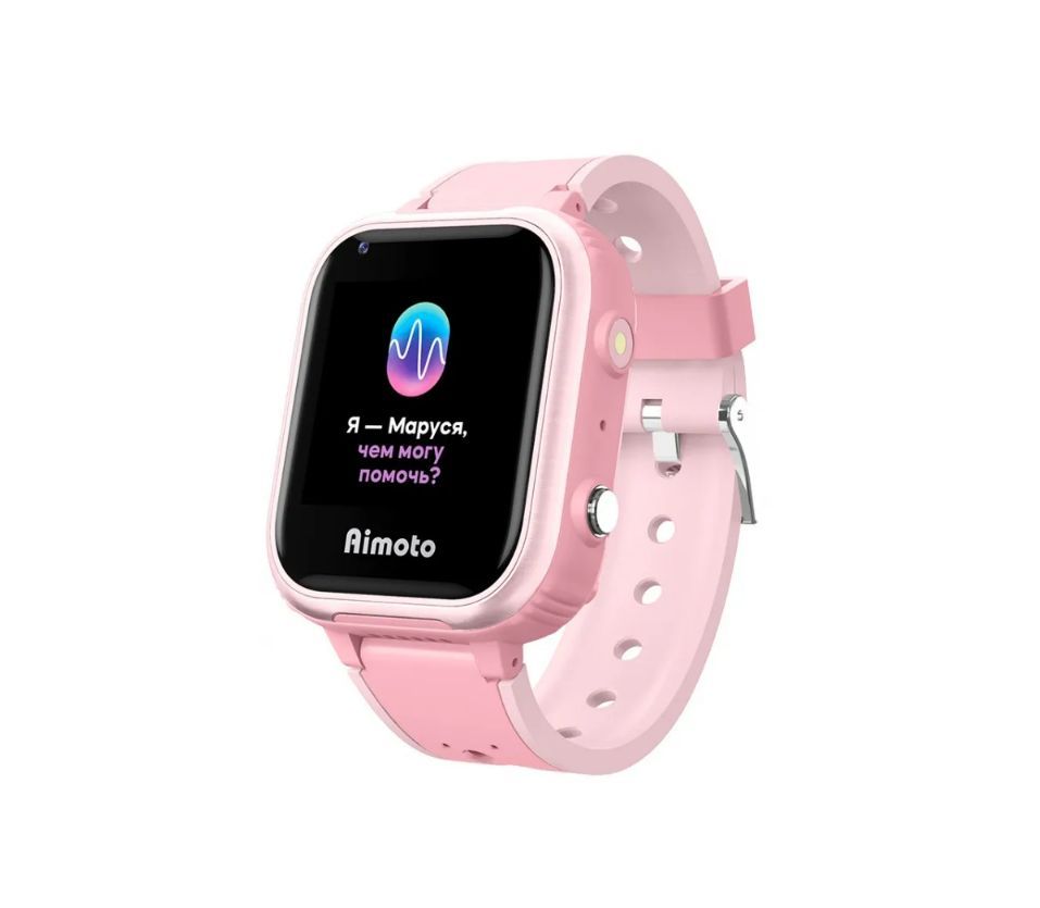 Умные часы для детей Aimoto IQ 4G розовые с голосовым помощником Маруся / детские смарт часы с GPS геолокацией / умные часы телефон / звонки на разрешенные номера / антиспам / обратный звонок / будильник / камера / кнопка SOS / собственная SIM-карта