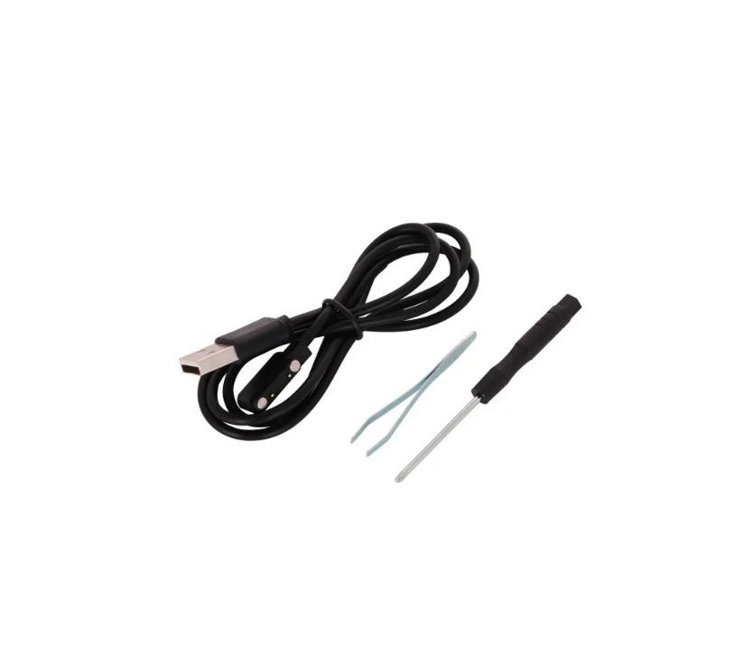 Часы, инструкция, пинцет, шнур зарядки, отвертка.