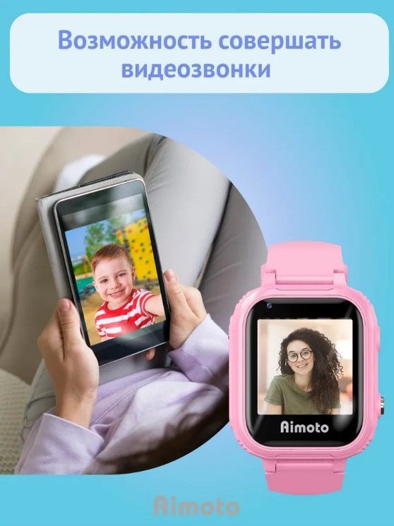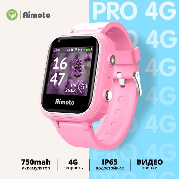 Умные часы для детей Aimoto Pro 4G розовые / детские смарт часы с GPS геолокацией / умные часы телефон / звонки на разрешенные номера / антиспам / обратный звонок / будильник / камера / кнопка SOS / собственная SIM-карта / батарея 750 мАч