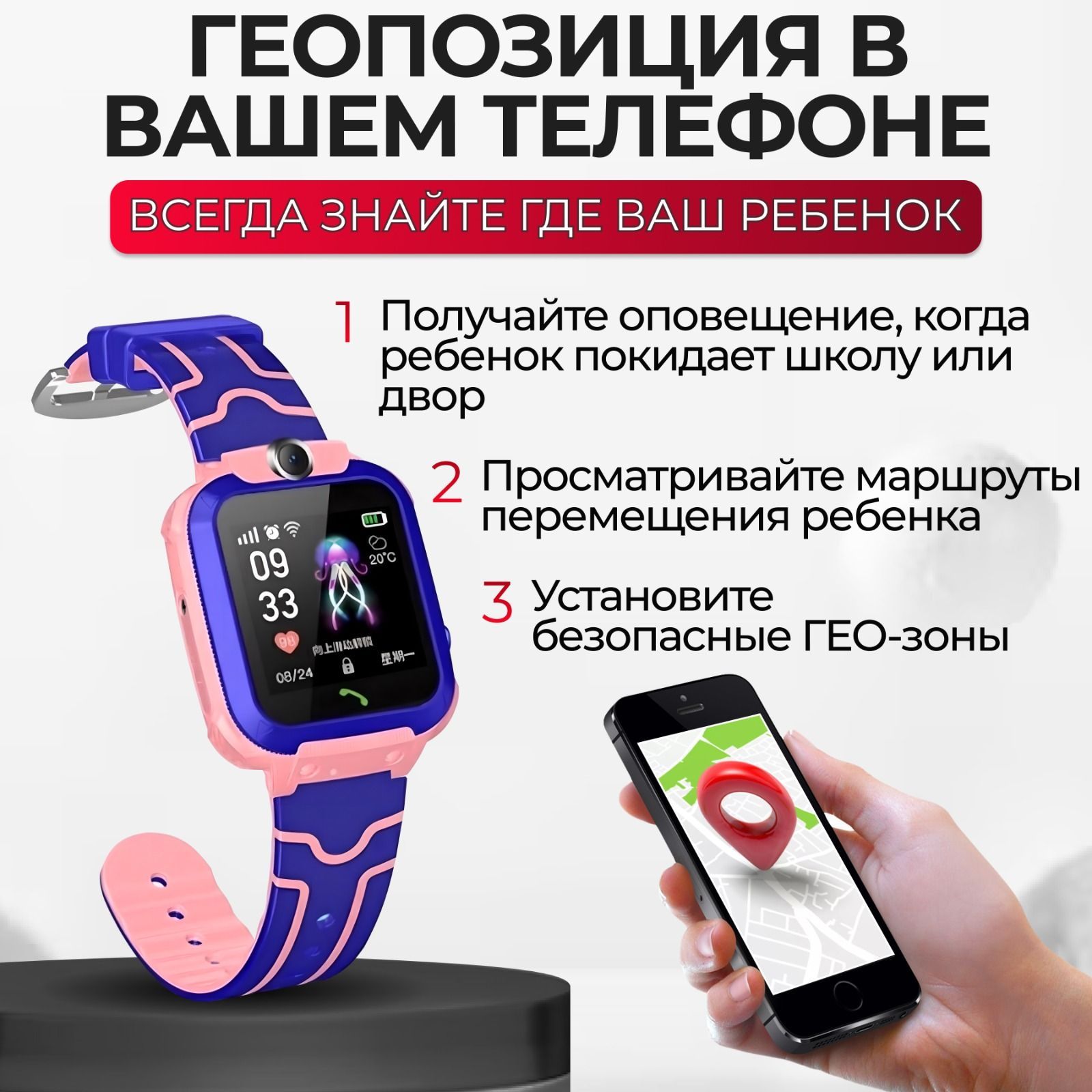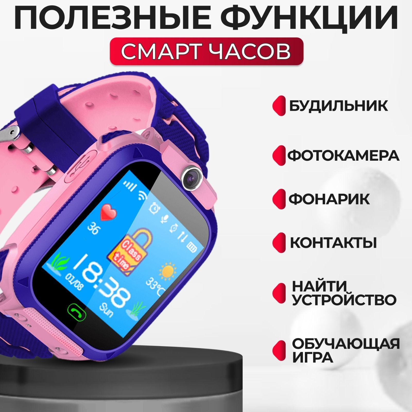 Описание: Смарт часы детские наручные – это устройство, которое предоставит вам новые возможности для контроля за своими детьми, а также даст им дополнительную защиту. Дети будут в безопасности, а вы всегда будете знать где они и что с ними. Современные детские часы с gps и телефоном обладают различными функциями и возможностями, которые помогают многим семьям. Одним из главных преимуществ умных часов с сим картой является функция кнопки SOS. Эта кнопка позволяет ребенку быстро позвать на помощь в случае опасности или беды. При нажатии кнопки SOS начинается автоматический звонок по номерам из телефонной книги, а родители получают уведомление с точной информацией о местоположении ребенка, и могут быстро принять меры. Хорошей функцией часов на руку детских является возможность определения точной геолокации с помощью GPS. Это позволит вам всегда знать, где находится ваш ребенок. В случае утери или похищения gps часов детских, вы сможете быстро определить их местоположение и принять меры для возврата. Детские смарт часы с gps и телефоном также позволяют звонить и отправлять сообщения. Вы сможете связаться со своим ребенком в любое время или отправлять сообщения, например, с напоминаниями. Для того, чтобы ребенок мог ответить на звонок или сообщение, ему необходимо просто нажать на кнопку на экране умных детских часов. Еще одной полезной функцией часов с сим картой детских является возможность обратного звонка. Родители незаметно для своих детей могут послушать окружающую ребёнка обстановку. Будильник — это еще одна опция, которая присутствует в часах с сим картой. Она позволит вам устанавливать будильники для своих детей на определенное время. Можно воспользоваться этим, чтобы напомнить ребенку о необходимости позвонить, сделать что-то, отправить его на занятия или в школу. В умных часах для детей с сим картой также предусмотрена камера, которая позволяет делать фото. Так вы всегда сможете узнать, что делает ваш ребенок в определенный момент времени. С помощью камеры можно сделать фото местности, которую ребенок посещает, и узнать больше о его интересах и увлечениях. Еще в часах умных детских есть фонарик. В темное время суток и в местах с недостаточной освещенностью у вашего ребёнка всегда будет свет. Надежность и долговечность умных часов для детей также имеет важное значение. Одного заряда батареи хватит минимум на два дня использования. Кроме того, детские часы на руку устойчивы к воде и ударам. Детские умные часы подключаются к вашему телефону с помощью приложения SeTracker2, которое устанавливается на смартфон. Благодаря этому вы можете устанавливать настройки и контролировать работу часов, а также получать уведомления о местоположении ребенка. Смарт часы для школьника являются очень полезным и удобным устройством для родителей, которые хотят обеспечить безопасность своих детей и контролировать их действия в течение дня. Большое количество функций и возможностей детских смарт часов делает их очень востребованными на рынке, а для детей — это прекрасный подарок на Новый год, День Рождения и любой другой праздник!