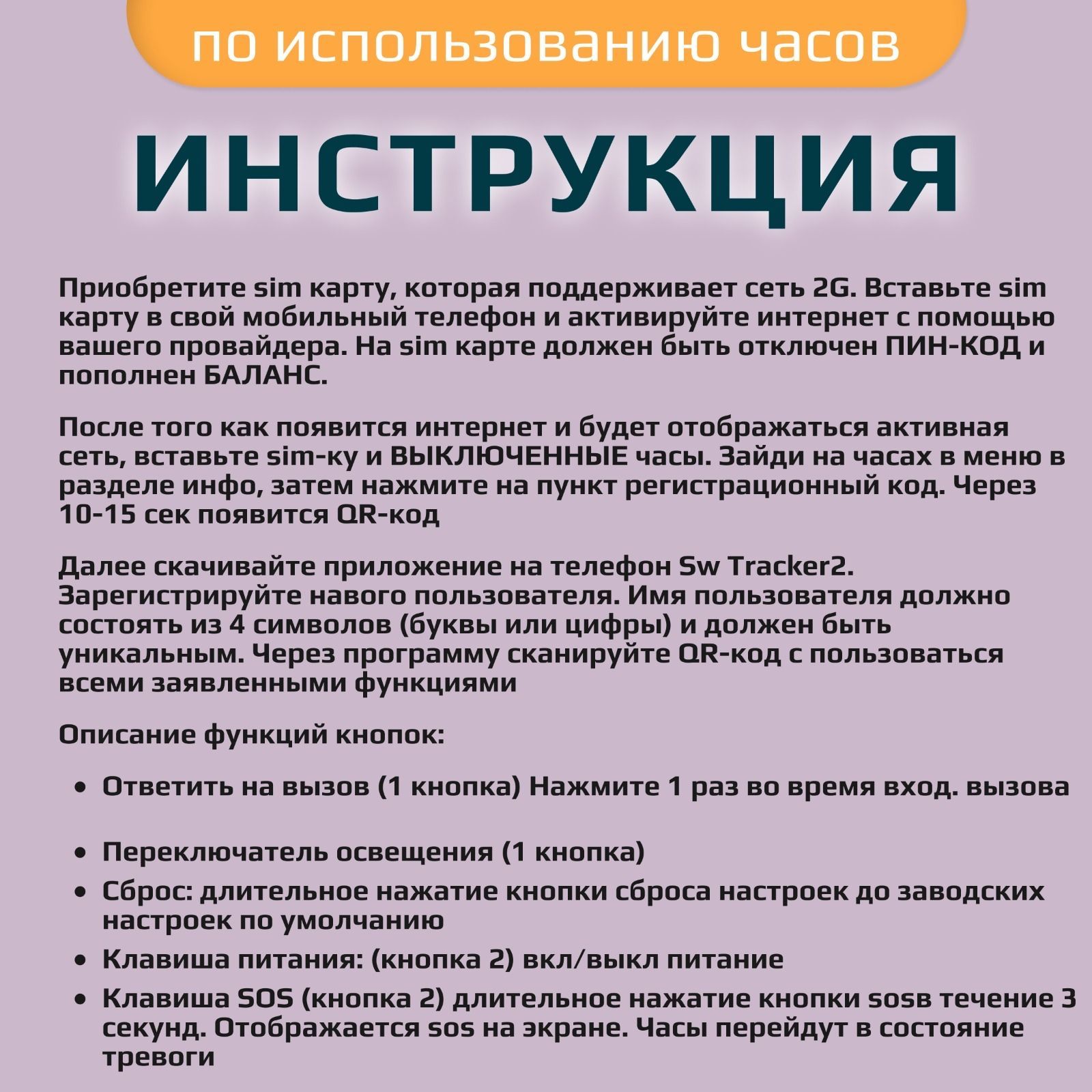 Описание: Смарт часы детские с сим картой - одна из самых популярных технологических новинок, предназначенных для безопасности и коммуникации ребенка с родителями. Такие смарт watch предлагают родителям возможность быть на связи с ребенком в любое время, а также точно отслеживать его местоположение. Одной из основных функций умного браслета является кнопка SOS, которая позволяет ребенку срочно вызвать помощь в случае опасности. Нажатие на эту кнопку автоматически начинает звонок на номера, указанные в настройках, а также отправляет родителям точное местоположение ребенка. С помощью встроенного GPS-модуля сенсорные часы предоставляют возможность точного определения местоположения ребенка. Приложение SeTracker2 позволяет родителям видеть, где находится их ребенок в режиме реального времени на карте, а также отслеживать его перемещения по указанной дате и времени. Помимо этого, умные часы-телефон позволяют осуществлять звонки и отправлять сообщения. Ребенок может звонить на заранее указанные номера и отправлять текстовые сообщения. Таким образом, детские часы для девочки предоставляют ребенку возможность связаться с родителями в любой момент. Функция обратного звонка (прослушка) является удобной дополнительной возможностью детских smart baby watch. Родители могут незаметно послушать, чем занят ребенок в режиме онлайн времени. Смарт часы детские для мальчика также предлагают функции будильника, камеры и фонарика. Будильник помогает ребенку быть вовремя на занятиях или мероприятиях, камера позволяет делать фотографии и фиксировать интересные моменты, а фонарик будет полезен во время прогулок или в темных помещениях. Одна из главных особенностей наших смартчасов - наличие слота для сим-карты. Это означает, что родители могут использовать любого оператора сотовой связи, у которого есть доступ к сети 2G. Связь через сим карту обеспечивает стабильное подключение и позволяет родителям все время быть на связи с ребенком. Батарея в часах цифровых обеспечивает длительное время автономной работы. Одного заряда хватает на 2 дня использования и даже больше. Это означает, что ребенок может носить наши смарт-часы и браслеты весь день, не беспокоясь о необходимости их зарядки. Связь умных часов со смартфонами родителей осуществляется с помощью приложения SeTracker2. Оно позволяет установить безопасные гео-зоны для нахождения ребенка, т.е. определить пределы, в которых ребенок может находиться. Если ребенок покидает установленную зону, часи автоматически отправляют уведомление на телефон родителей. Кроме того, приложение позволяет просматривать маршруты перемещений ребенка за последние 30 дней, что позволяет родителям быть в курсе, куда и как долго ходит их ребенок. Детские смарт-часы с sim-картой представляют собой надежный инструмент для обеспечения безопасности ребенка, позволяют родителям контролировать его местонахождение и быть всегда на связи. Такие чисы watch объединяют в себе функции телефона, GPS-навигатора и медиа-устройства, делая жизнь и коммуникацию с ребенком более удобными и безопасными.
