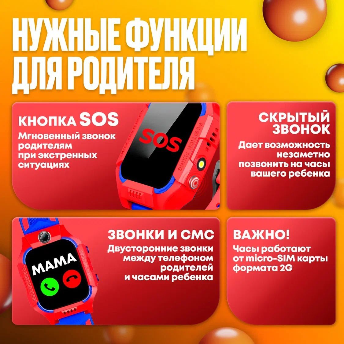 Дополнительные функции: Звонки с помощью телефона, Кнопка экстренного вызова, Слот для SIM
