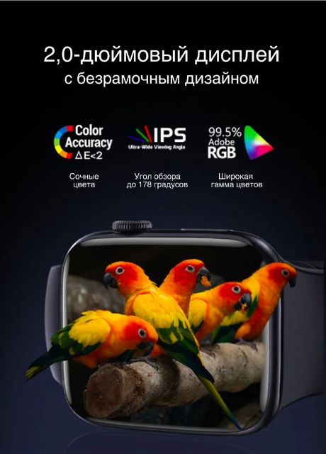 Самая последняя и актуальная модель смарт часов 8 серии по состоянию на конец 2022 года! По-настоящему тонкие рамки, большой Full Screen дисплей 2,0" IPS с отличным разрешением 420*485 и четкой картинкой, ультра-быстрый сенсор, плавная анимация, новый производительный процессор, звонки по Bluetooth и уведомления из социальных сетей и мессенджеров.
