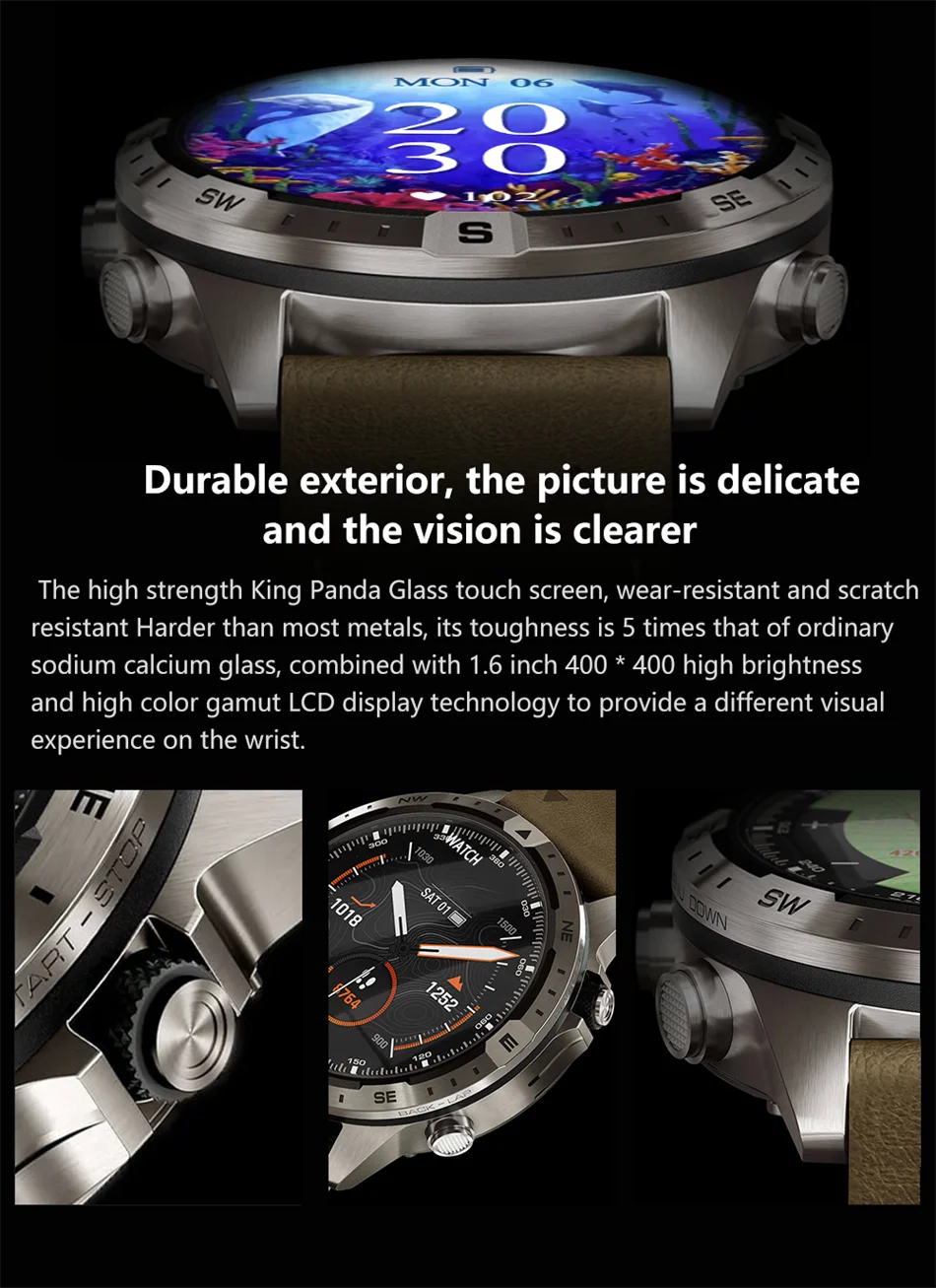 Звонок по Bluetooth | пульсоксиметрия | электронный компас | 100 + спортивных моделей | цинковый титановый сплав 5 класса | lking Panda Glass S | Пять кнопок из нержавеющей стали