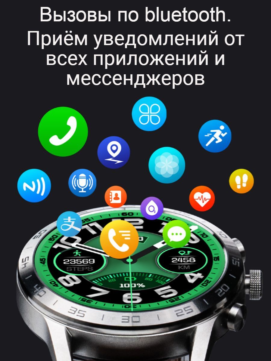 IP68 водонепроницаемый и пыленепроницаемый.Благодаря водонепроницаемости и пыленепроницаемости на уровне IP68 часы можно использовать в обычном режиме, даже при мытье рук или в дождливые дни, что позволяет вам решать любые задачи.Звонки по Bluetooth.Пользователи могут не только принимать входящие звонки,но и сами набирать номер абонента на экране смарт часов. А так же получать входящие SMS и уведомления от всех мессенджеров и установленных приложений.