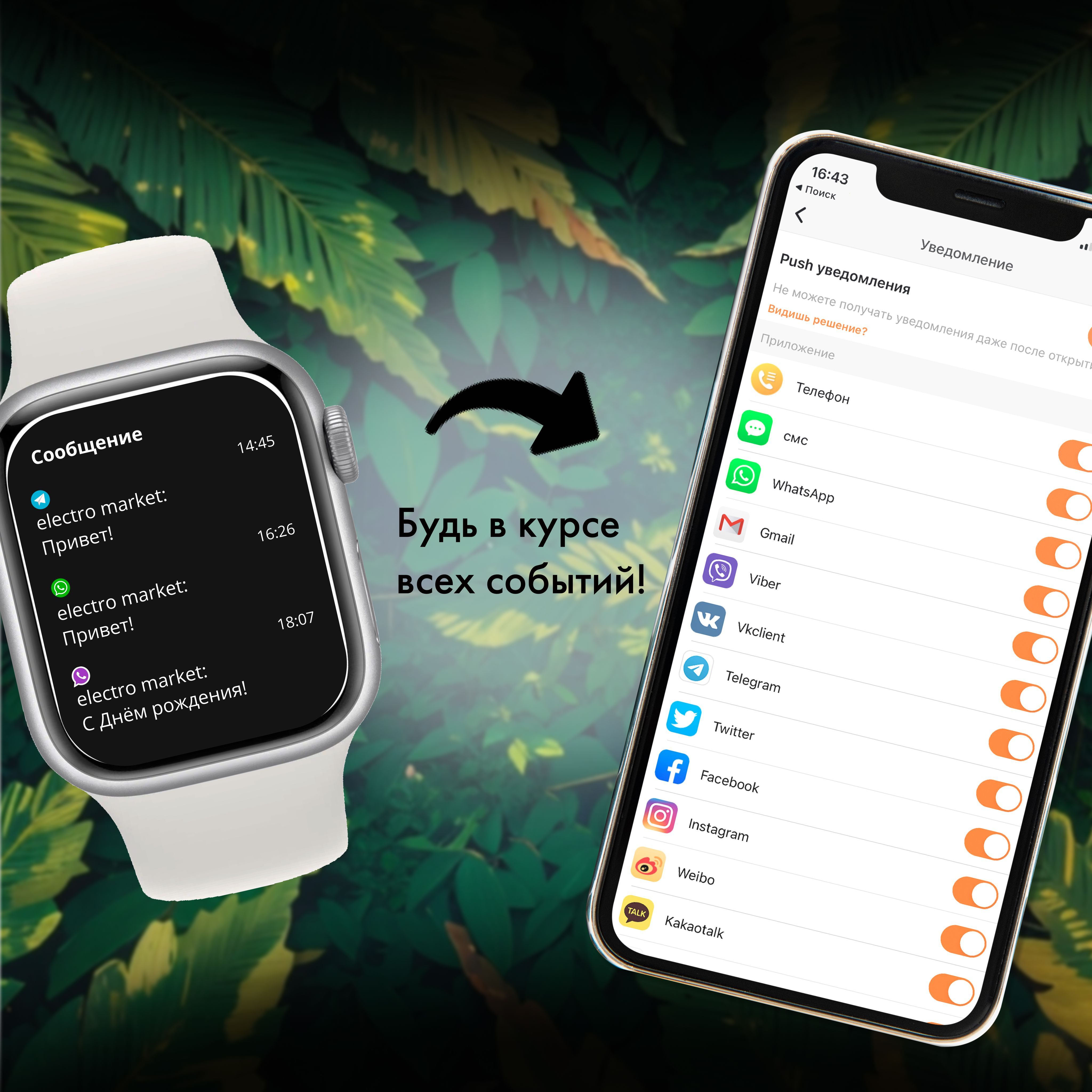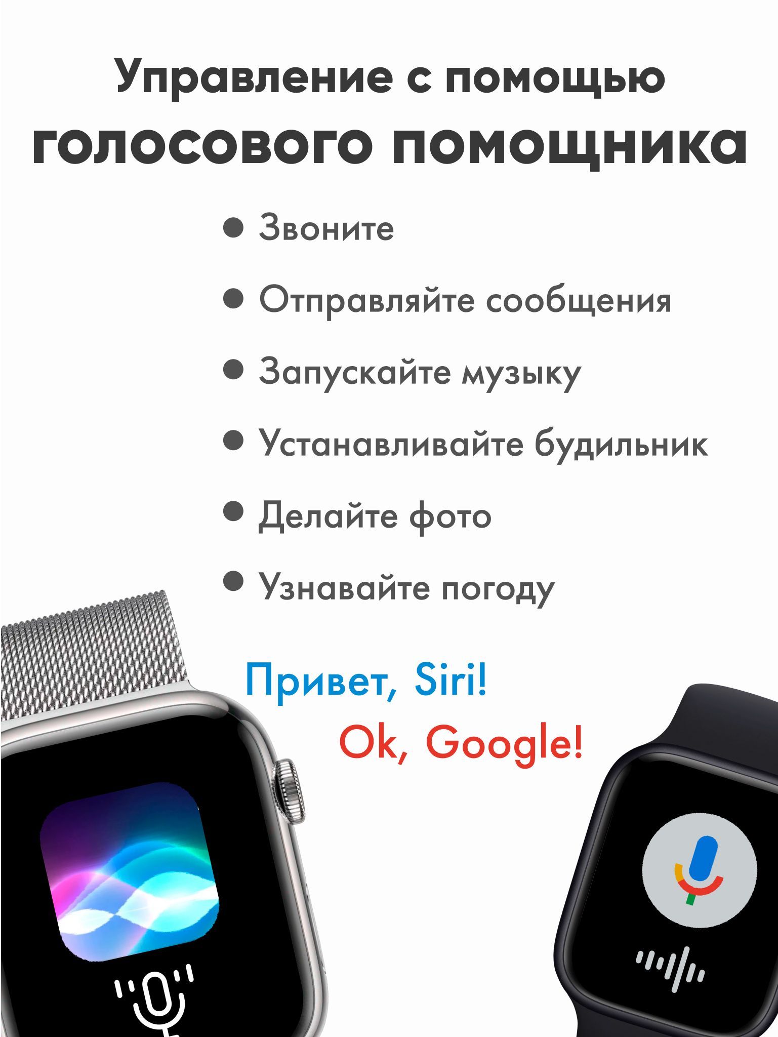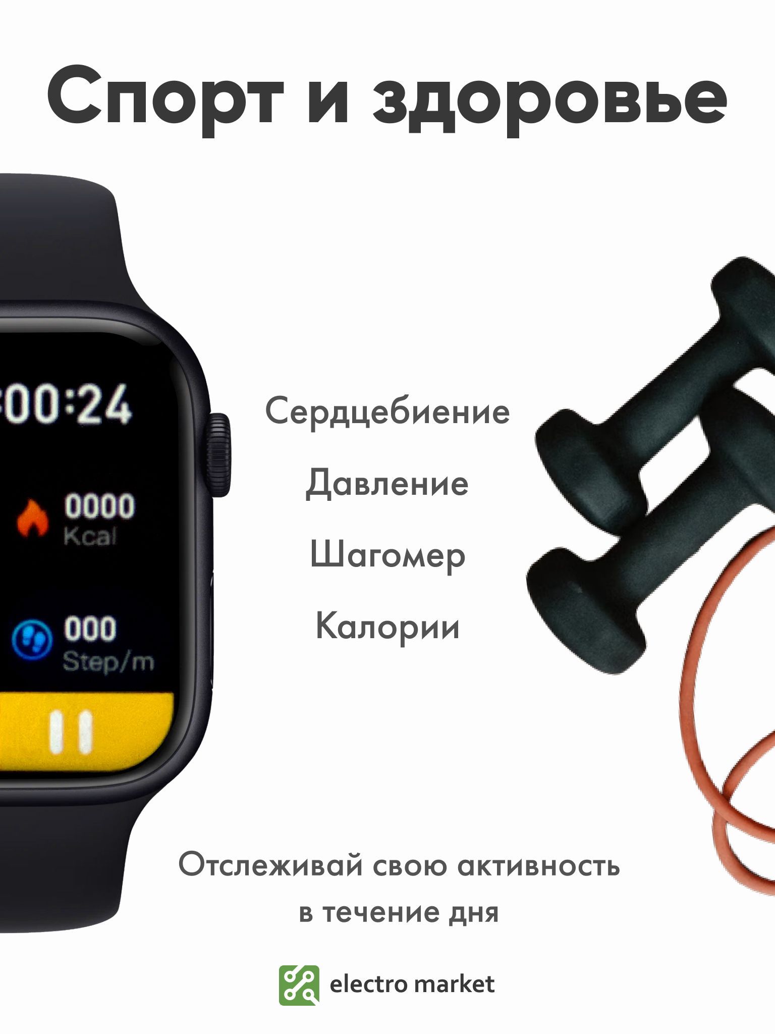 Описание: Smart WatchСмарт часы – это современный наручный гаджет, который совмещает в себе множество функций. Умные часы синхронизируются с телефоном на основе ios и андроид с помощью bluetooth 5.0 и выше. Такая синхронизация обеспечивает реализацию часами множества внешних и внутренних функций - они могут совершать мобильный звонок и получать ответ, обеспечивать работу с приложениями, голосовым набором и помощником. Чтобы узнать о совместимости с Вашим смартфоном, лучше предварительно задать вопрос продавцу. КачествоВсе часы нашего магазина перед отправкой проверяются на комплектацию, включение и работу зарядного устройства. Мы заинтересованы в том, чтобы Вы получали качественный товар.ВозможностиБлагодаря приложению WearFit Pro часы подключаются к смартфону, с поддержкой на русском языке обладают функцией отслеживания геолокации, gps, качества сна и спортивной активности, следят за состоянием здоровья, измеряют давление и показывают сердечный ритм. В часах есть календарь, отслеживание даты, счетчик шагов, будильник, подсветка экрана, качественный циферблат, блютуз, яркий дисплей, время, музыка.