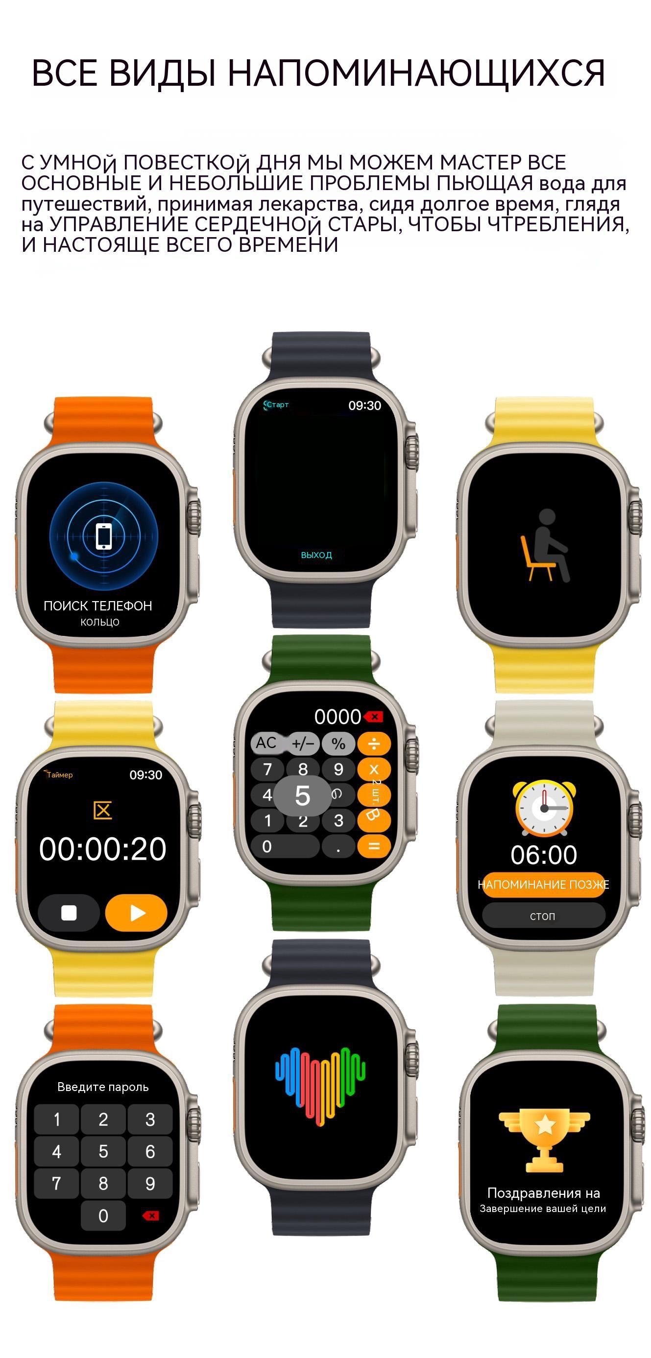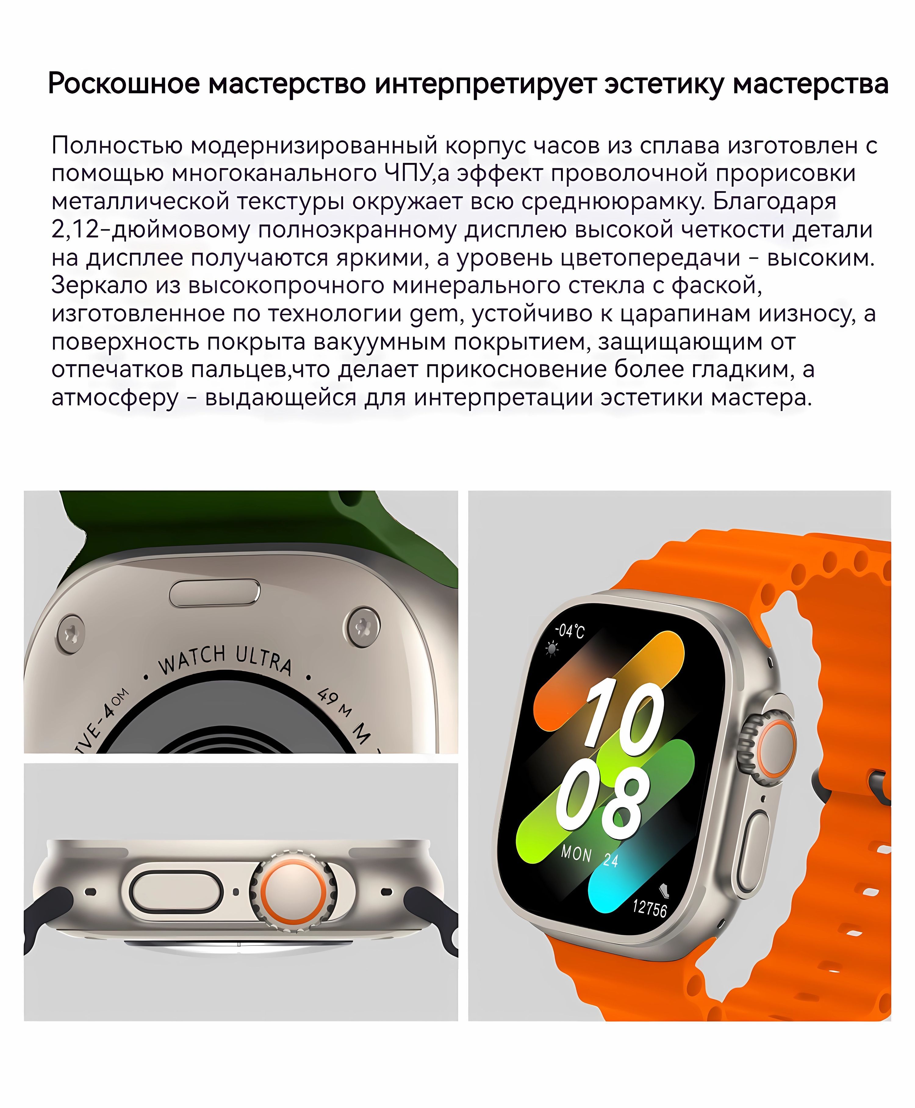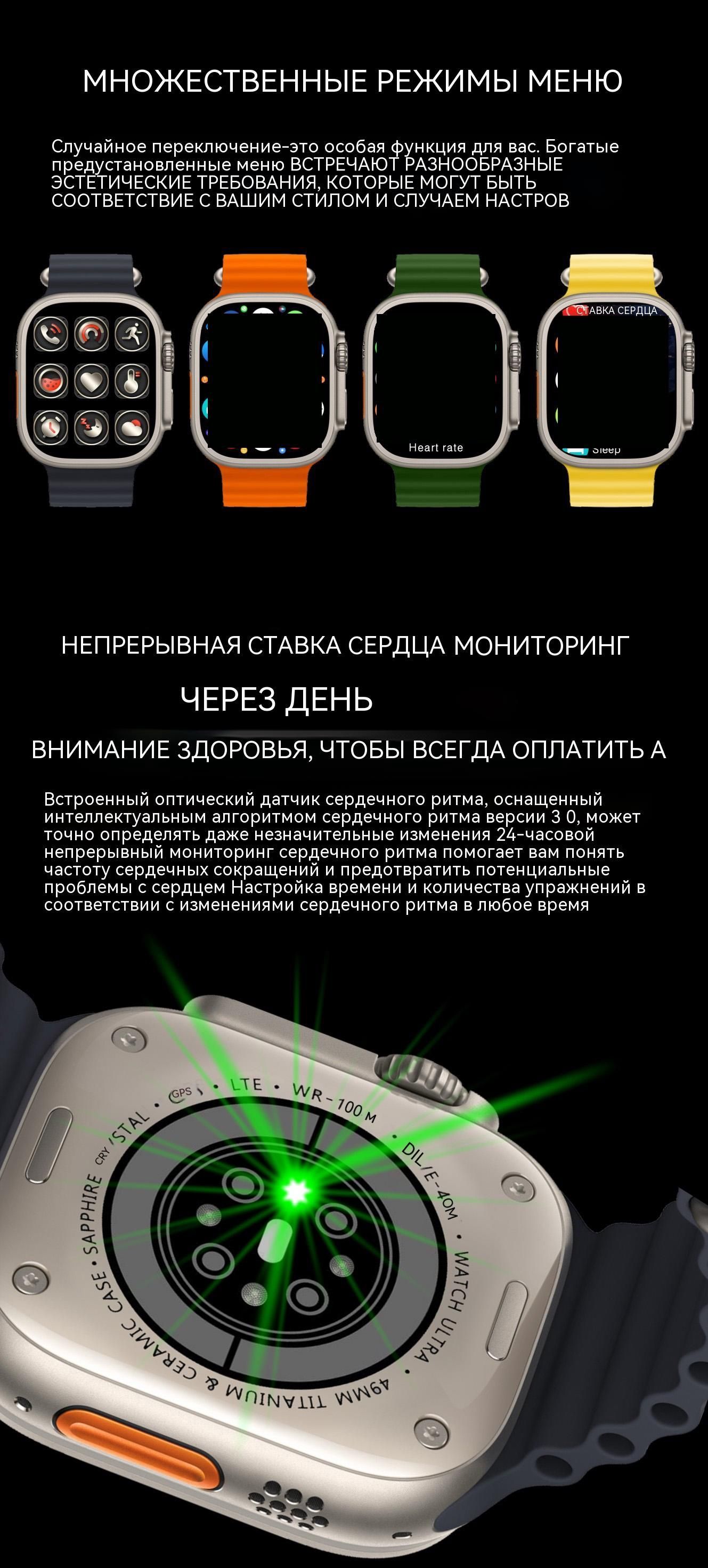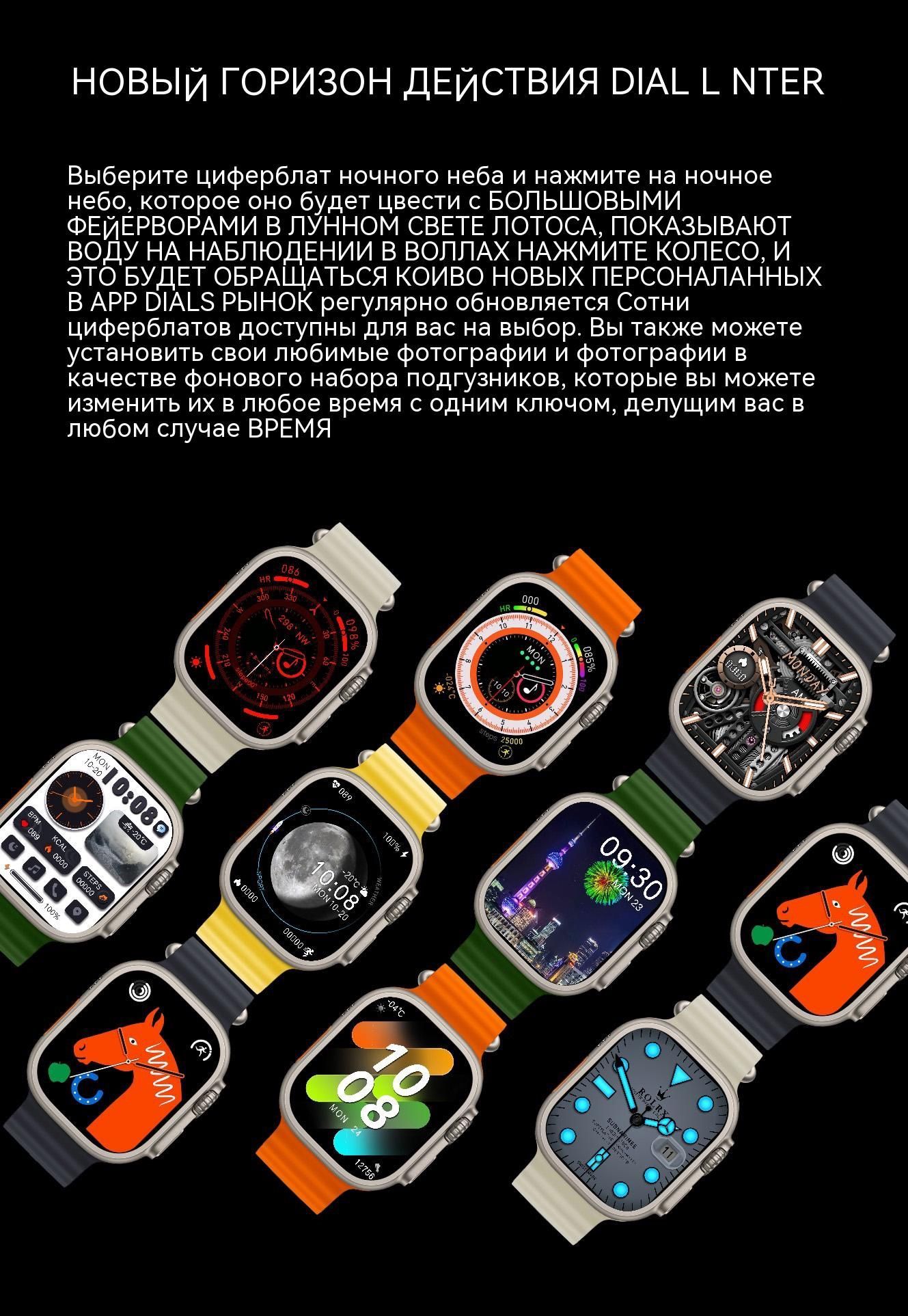 Умные часы Greentiger /Часы/HK8 PRO MAX UlTRA/watch 8/AMOLED/черное/Смарт-часы/GPS Умные часы/NFC Умные часы/bluetooth/Мужские часы/Женские часы/Спортивные часы/давление/пульс, 49mm, оранжевый