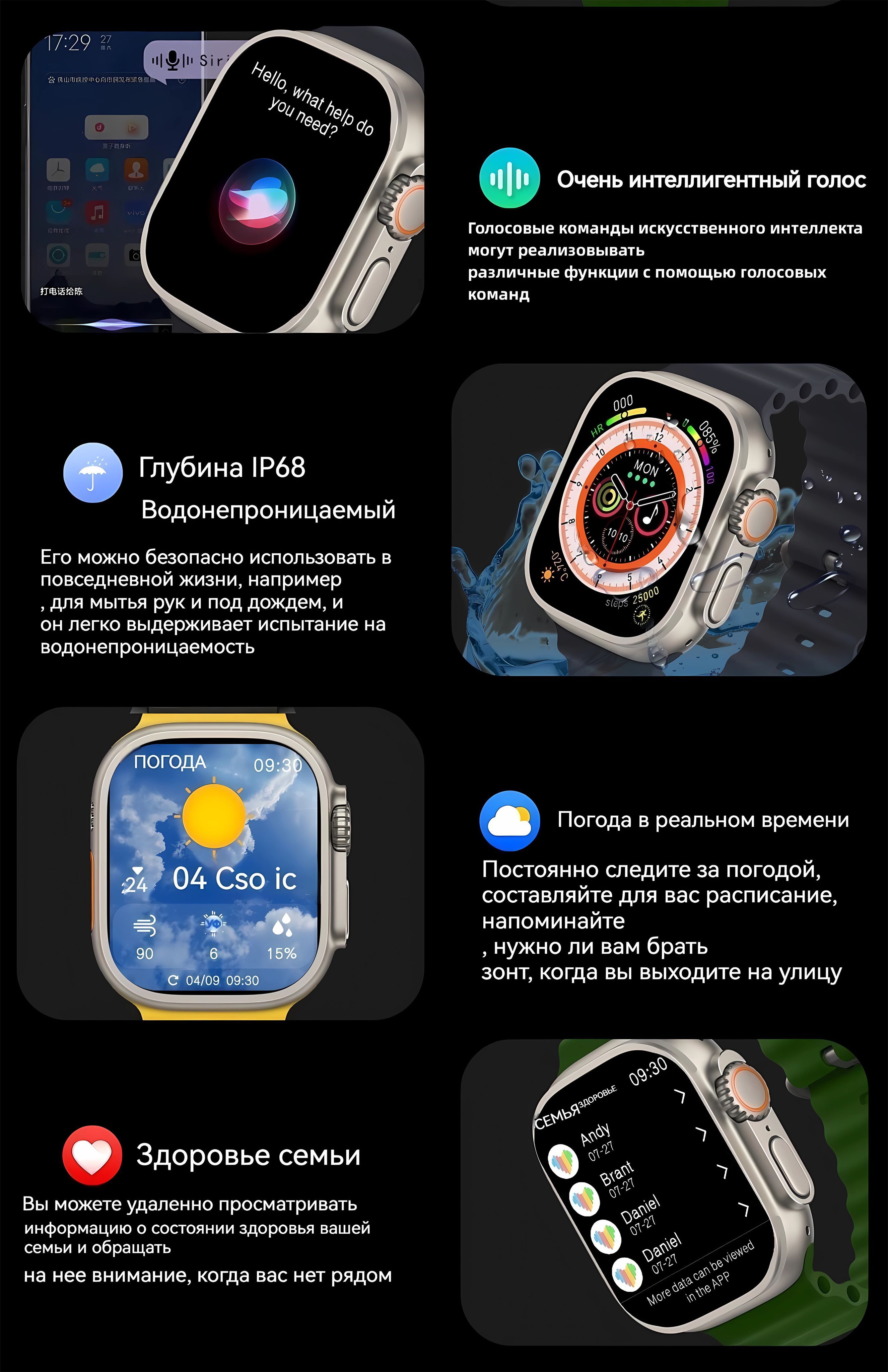 Описание: Другая функция:Кислород в крови, Напоминание о вызове, уведомление о сообщении, секундомер, Управление музыкой, воспроизведение музыки BT, камера дистанционного управления, Защита от потери, будильник, Информация о погоде, push-уведомление, установка даты вручную、Голосовой помощник с искусственным интеллектом Компас