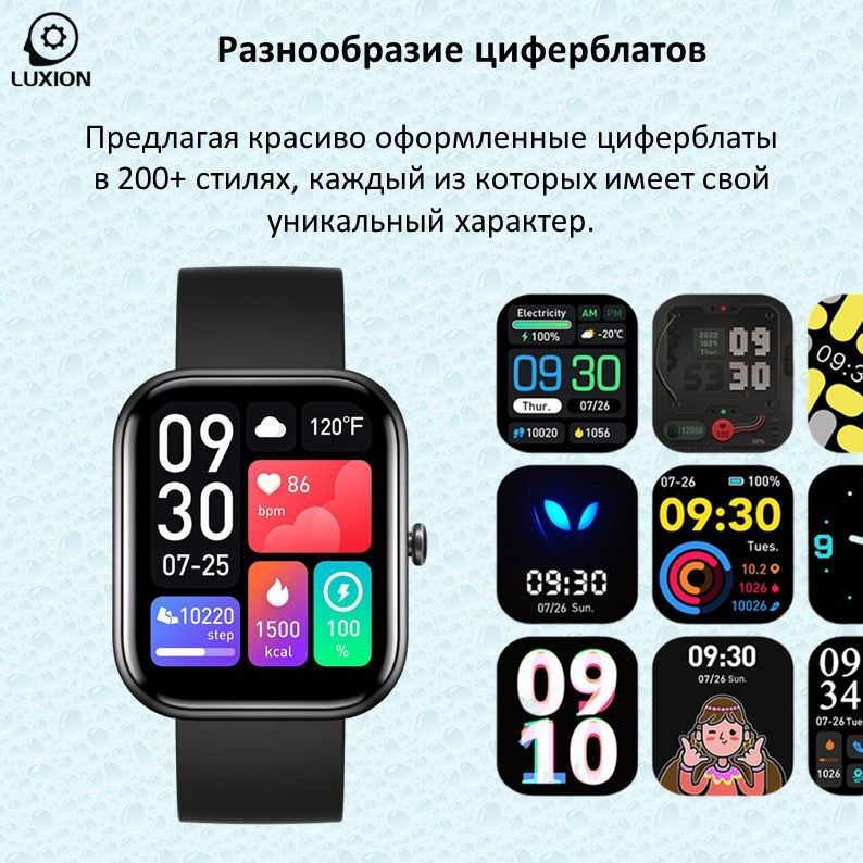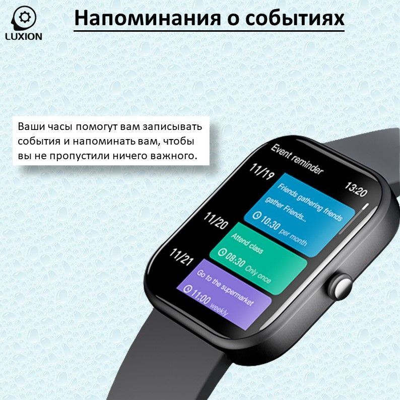 Цвет ремешка Голубой, Розовый, Серый, Черный