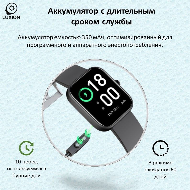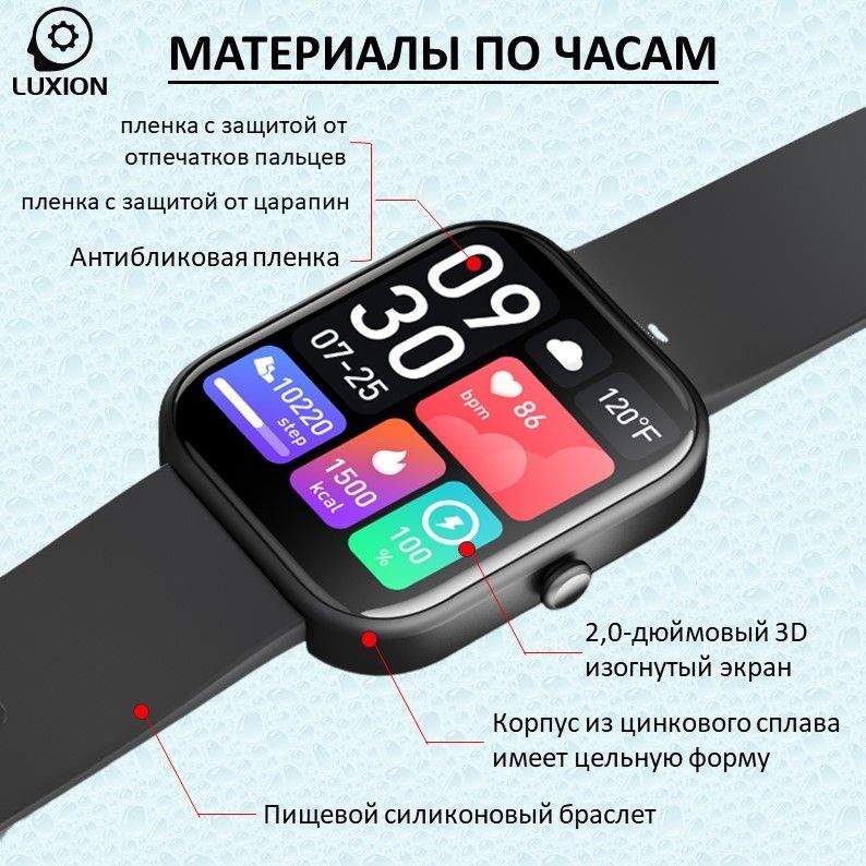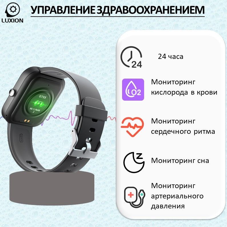 Встроенные датчики: Датчик движения, Пульсометр, Датчик артериального давления, Датчик уровня кислорода в крови