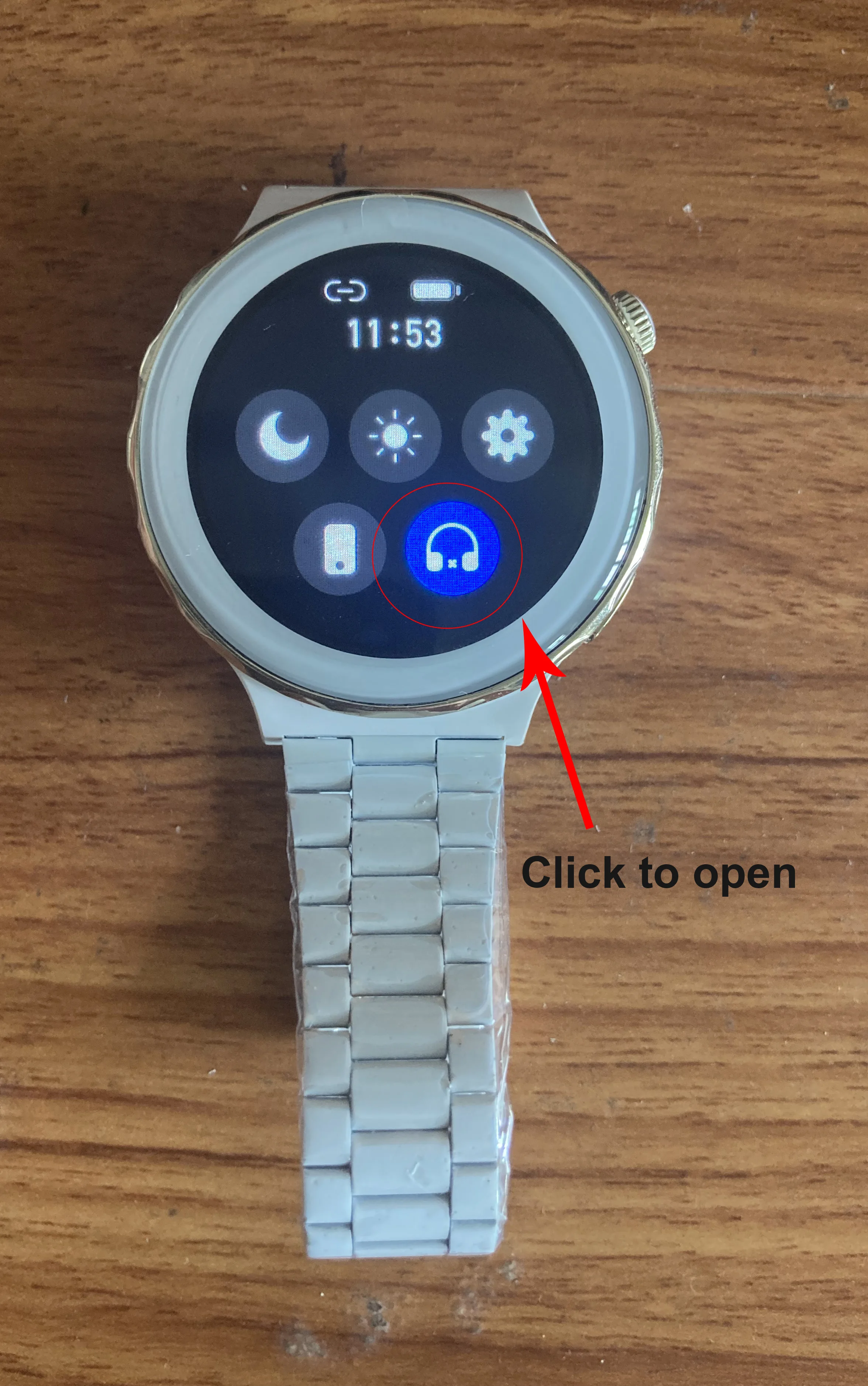 1. После подключения к телефону через Bluetooth Включите часы и перейдите на домашнюю страницу часов, после чего вы увидите значок «наушники», как указано ниже: затем нажмите, чтобы открыть его.