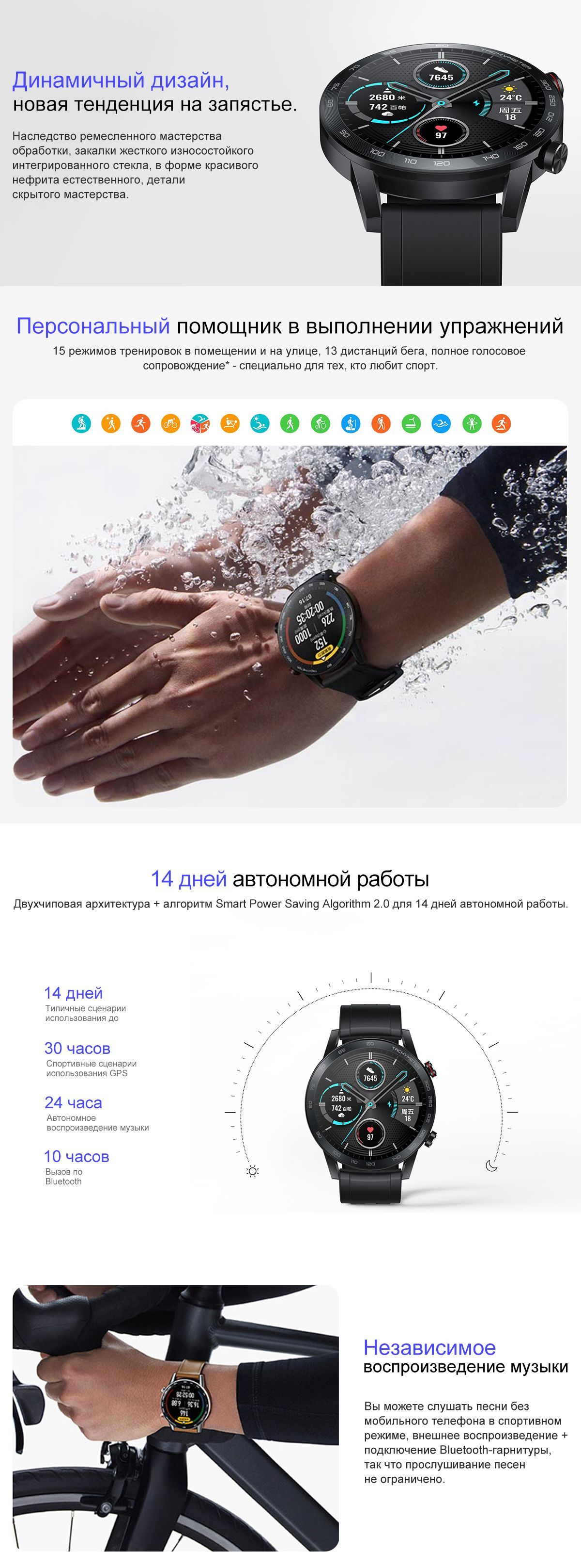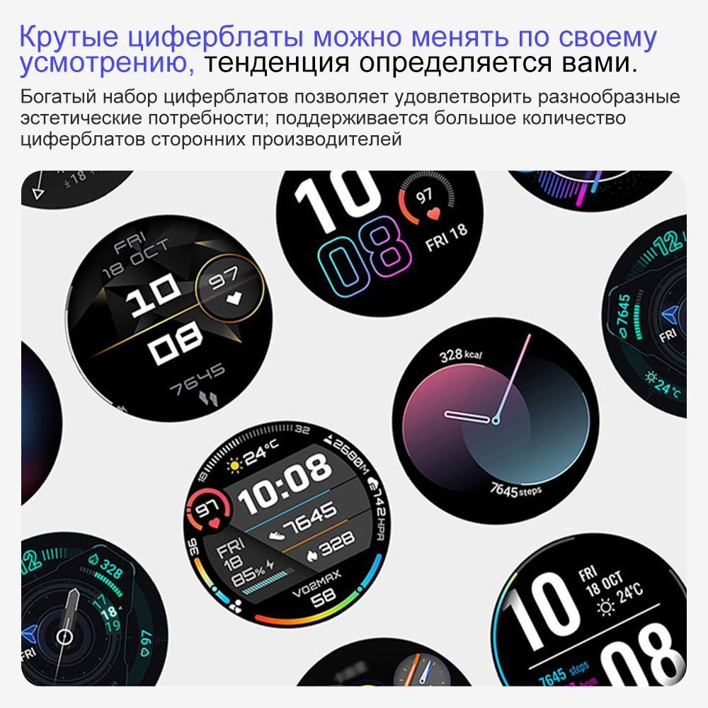 Часы, 1 шт. Кабель для зарядки, 1 шт. Зарядная база, 1 шт. Руководство по эксплуатации, 1 шт.
