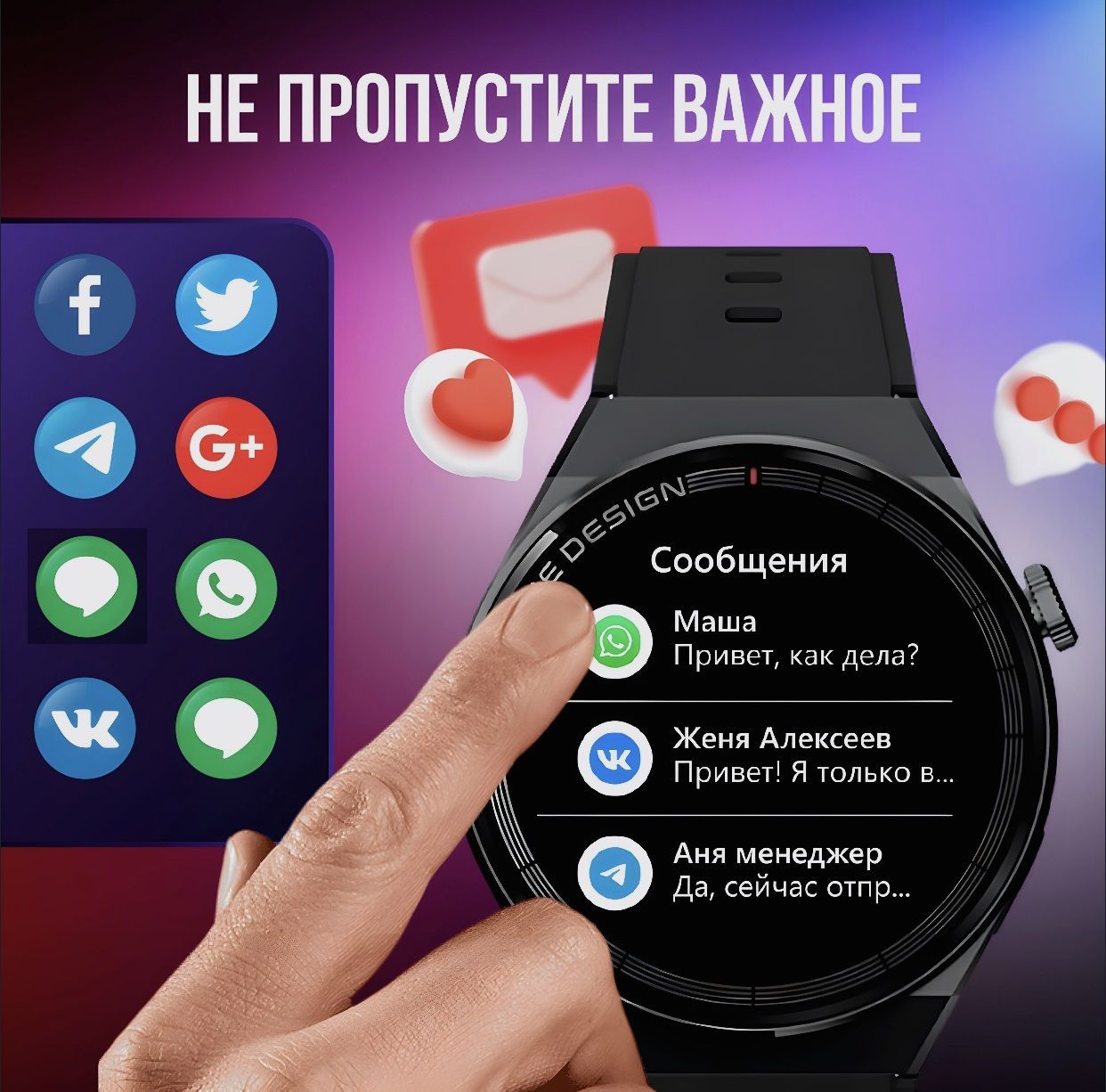 Smart часы уведомляют о входящих сообщениях и звонках.