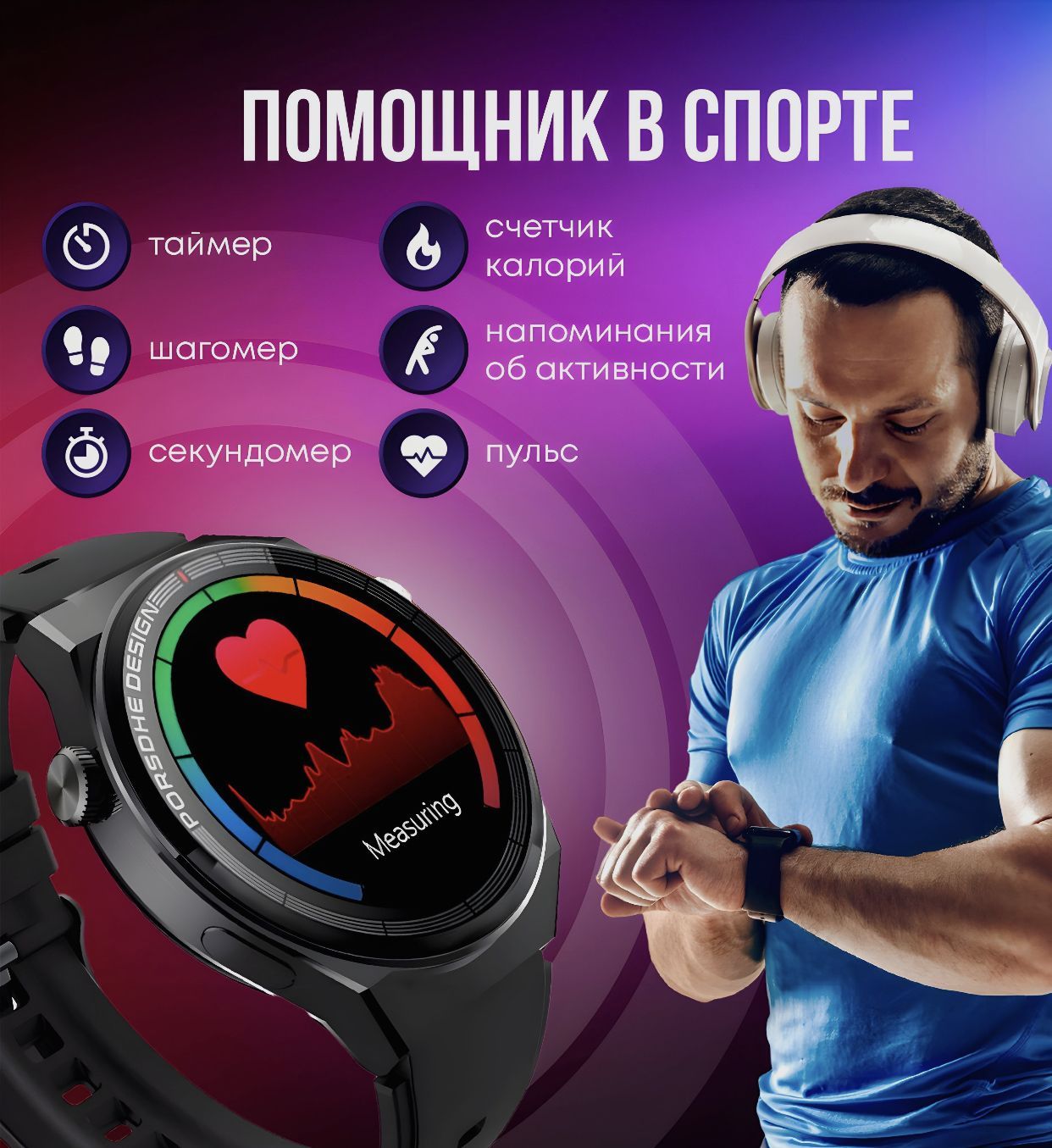 Мониторинг: Сердечного ритма, Сна, Уровня стресса, Усвоения калорий, Физической активности, Электрокардиограмма