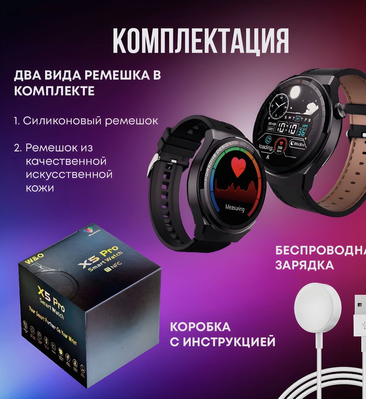 Умные часы Smart Watch Ремешок силиконовый Ремешок кожаный Беспроводное зарядное устройство Инструкция