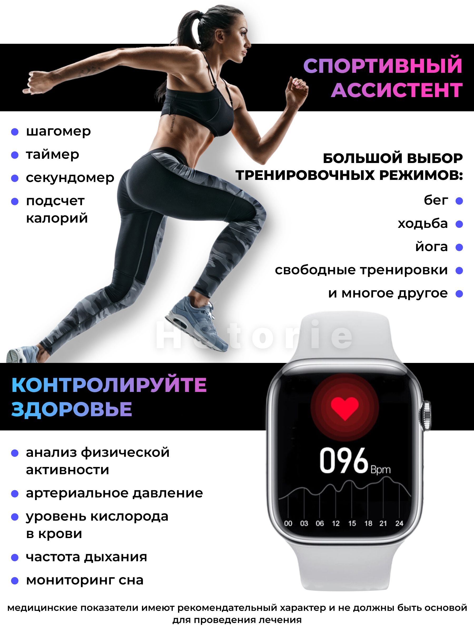 Мониторинг: Сердечного ритма, Сна, Уровня стресса, Усвоения калорий, Физической активности