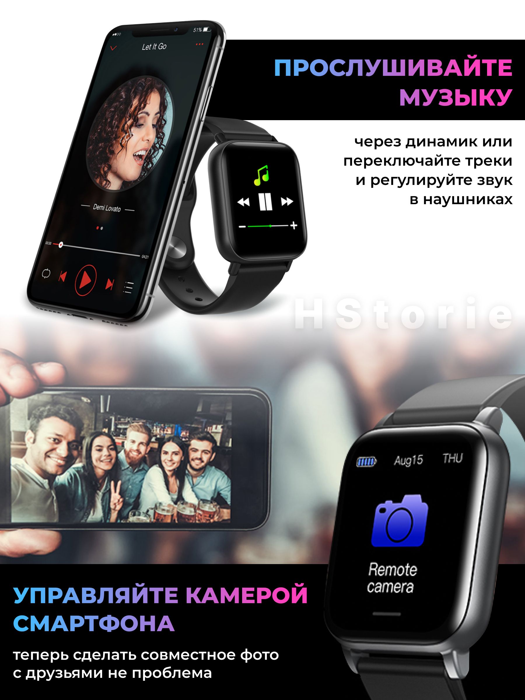 Управляйте музыкой на смартфоне через умные часы или прослушивайте свои любимые книги и плейлисты непосредственно через встроенный динамик smartwatch .