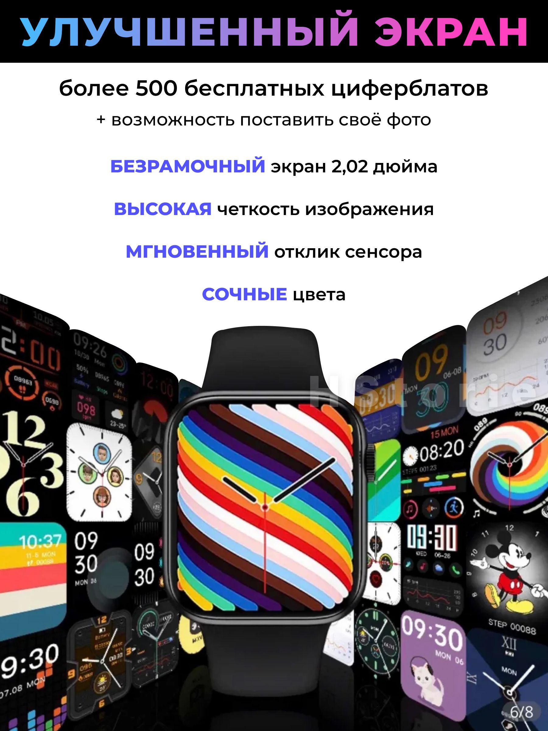 Яркие смарт-часы оснащены безрамочным сенсорным экраном IPS 2.02 дюйма в усиленном корпусе и обновлённым функционалом. Отзывчивый дисплей с легкостью выполнит все задачи, а высокий уровень IP защитит смарт вотч 8 Series от влаги и пыли.