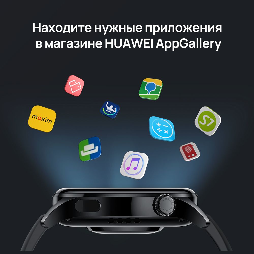 в магазине приложенийЗагружайте приложения из установленного на HUAWEI WATCH 3 магазина приложений HUAWEI AppGallery. Находите нужные приложения для воспроизведения музыки, занятий спортом, выполнения ежедневных задач и планирования путешествий.Заботьтесь о здоровье с помощью интеллектуальных функцийИспользуйте интеллектуальные функции, чтобы отслеживать состояние своего здоровья и фиксировать спортивные достижения. Наблюдайте за прогрессом с приложением HUAWEI Health.Измеряйте температуру телаИспользуйте функцию измерения температуры⁷ и получайте уведомления, когда она слишком высокая. Следите за здоровьем и заботьтесь о своем самочувствии.Измеряйте уровень кислородаЕсли вы взволнованы и испытываете одышку, возможно, уровень кислорода у вас в крови (SpO2) низкий. Измеряйте уровень кислорода с помощью технологии TruSeen 4.5+, позволяющей измерять длину световой волны и распознавать молекулы кислорода в крови даже при низкой температуре окружающей среды и при нахождении на большой высоте. Благодаря низкому уровню энергопотребления технологии TruSeen 4.5+ вы сможете отслеживать уровень кислорода в крови круглосуточно.Держите руку на пульсеИнновационная технология HUAWEI TruSeenTM 4.5 измеряет пульс с помощью LED-датчика 6 в 1 и 4 фотодиодов. Сапфировое стекло улавливает свет, экономит заряд батареи и удобно в ношении. Инновационные алгоритмы обеспечивают более точное отслеживание пульса.Ваш план действий