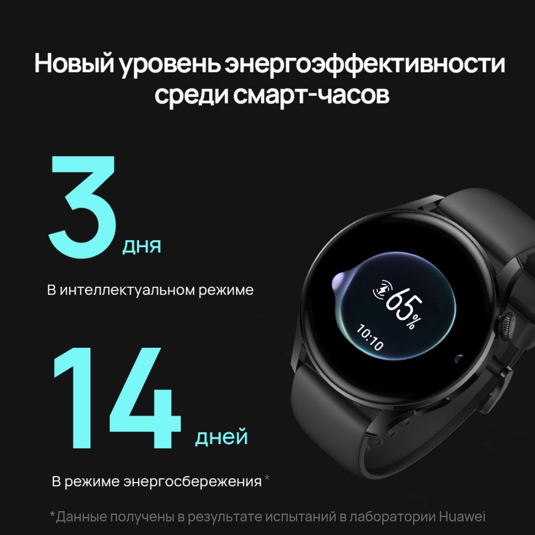Батарея может работать в течение 14 дней без подзарядки, если соблюдены следующие условия: включен режим энергосбережения, установлены заводские настройки по умолчанию, включена функция отслеживания пульса, в ночное время включена функция HUAWEI TruSleep™, вызовы по Bluetooth выполняются в течение 30 минут в неделю, тренировки с включенным GPS выполняются в течение 90 минут в неделю, включены уведомления о поступлении новых сообщений (50 SMS-сообщений, 6 вызовов, 3 уведомления о срабатывании сигнала будильника в день), а экран активируется 200 раз в день.