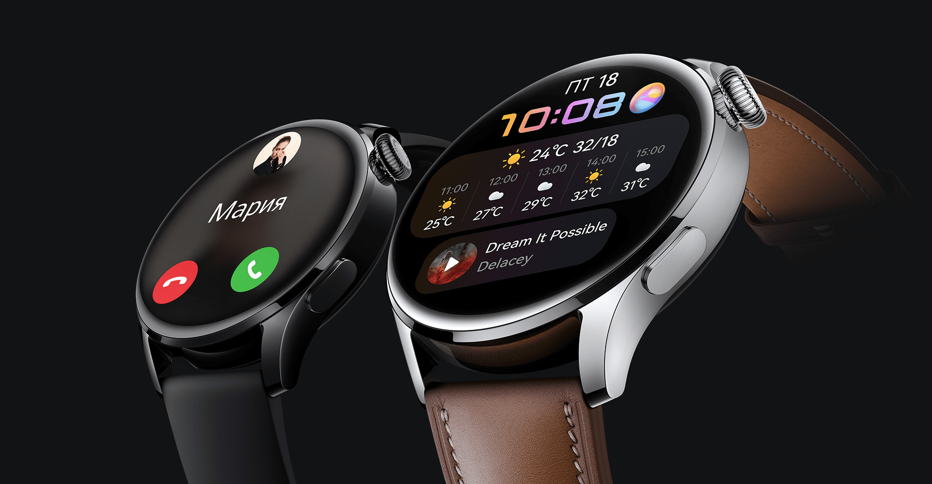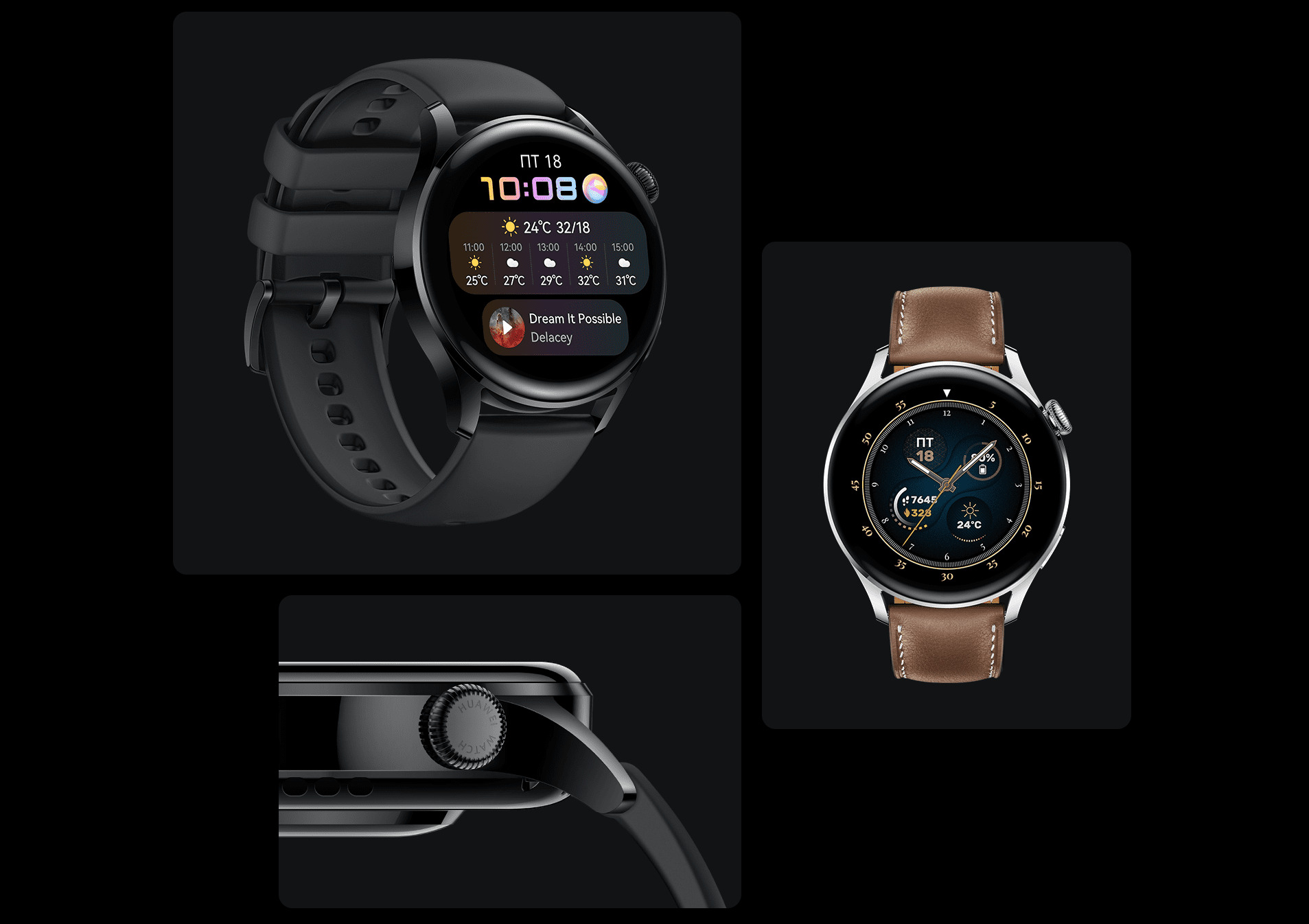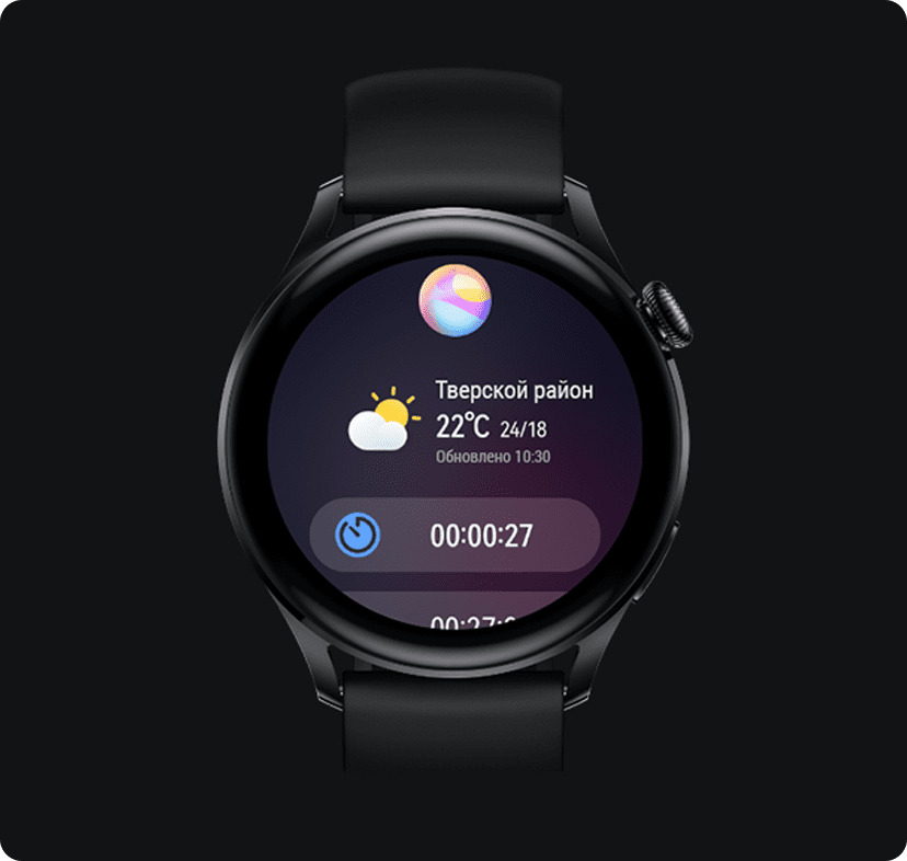 Круглосуточный мониторинг состояния здоровья6 причин влюбиться в HUAWEI WATCH 3Элегантный аксессуарУмные часы дополнят ваш стильный образ. Плавные линии и округлая форма придают часам элегантность, а инновационный AMOLED-экран 1,43 дюйма обеспечивает комфорт и удобство при использовании.Выбирайте лучшееУправляйте HUAWEI WATCH 3 с помощью чувствительного сенсорного экрана, боковой кнопки и поворотной кнопки. Используйте поворотную кнопку, чтобы перемещаться между функциями, отображающимися на экране, и регулировать громкость.Циферблаты