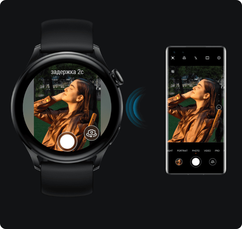 съемкойНикому не нравится оставаться за кадром. Снимайте фотографии с друзьями с помощью функции «‎Удаленное управление фотосъемкой»⁶. Управляйте камерой смартфона и используйте зум с помощью поворотной кнопки на ваших часах.Удобное управлениеУправляйте входящими вызовами с помощью нескольких простых жестов⁵. Сожмите и разожмите кулак, чтобы ответить на входящий вызов, или поверните запястье, чтобы отключить звук мелодии входящего вызова⁵.Находите нужные сервисы