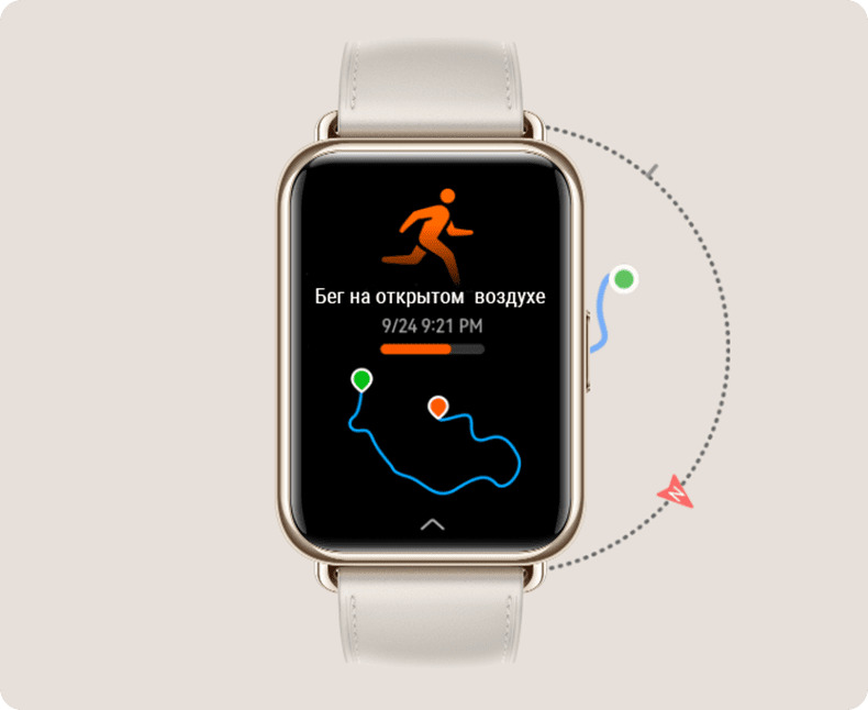 с использованием информации из приложения HUAWEI Здоровье. Анализ таких данных, как индекс бега, тренировочная нагрузка, дистанция, пульс и ритм, позволяет повысить эффективность беговых сессий.97 режимов тренировокУстройство предлагает 97 режимов тренировок, помогая вам всегда находиться в прекрасной физической форме.Определение местоположенияСмарт-часы поддерживают службы определения местоположения (GPS, Beidou, ГЛОНАСС, Galileo