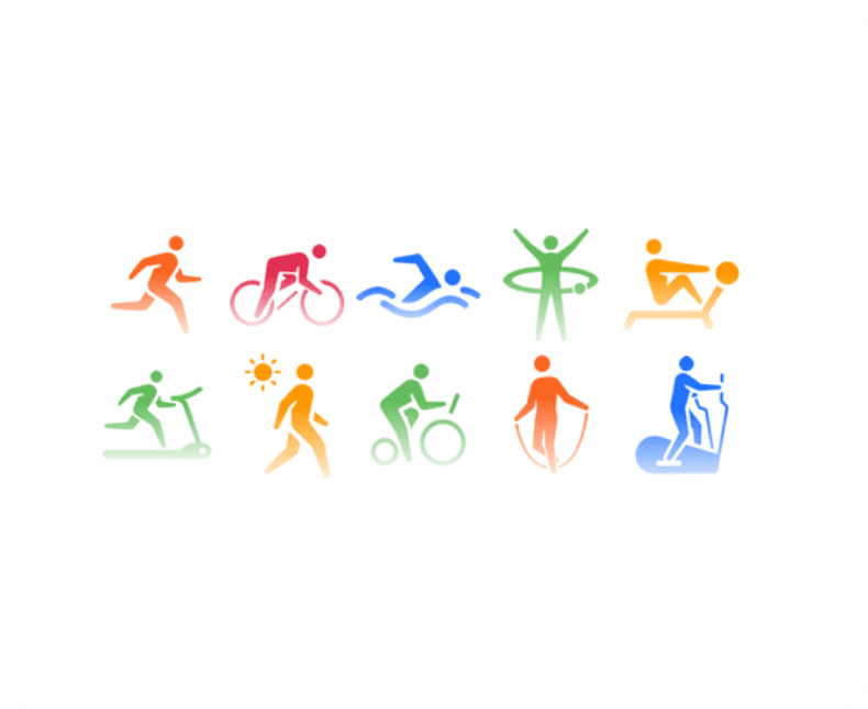 11. 7 стандартных режимов тренировки: бег на улице, бег на беговой дорожке, езда на велосипеде на открытом воздухе, велотренажер, плавание в бассейне, плавание в открытом водоеме и скакалка.