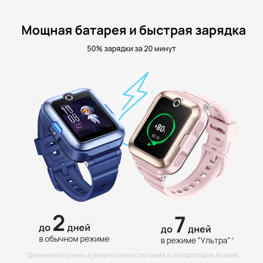 Мощная батареяЗарядите часы во время завтрака, и заряда батареи хватит на весь день. Часы оснащены батареей емкостью 800 мА*ч⁸, которая заряжается на 50% всего за 20 минут.LED-подсветкаУдобство и безопасностьЦветная LED-подсветка с обеих сторон циферблата часов помогает обеспечить безопасность вашего ребенка. Подсветка загорается в ритме шагов вашего ребенка, что позволяет не терять его из виду в темноте. Она загорается разными цветами в различных сценариях (например, когда срабатывает сигнал будильника или при добавлении нового друга⁹).Датчик ультрафиолетаОтслеживание времени пребывания на солнцеПребывание на свежем воздухе полезно для детей, способствует развитию скелетно-мышечного корсета и позволяет предотвратить близорукость.¹⁰ HUAWEI WATCH KIDS 4 Pro оснащены датчиками ультрафиолета и освещенности, которые отслеживают, сколько времени ребенок провел на улице в течение дня.¹¹Режимы тренировокАктивный образ жизниЧасы поддерживают различные режимы тренировок, от прыжков через скакалку до качаний пресса. Короткие тренировки длительностью одну минуту мотивируют детей больше двигаться и позволяют соревноваться с друзьями. Привейте ребенку любовь к активному образу жизни.Прыжки через скакалкуКачание прессаХодьбаАвтоматическая настройка яркости экранаЯркость меняется в зависимости от окружающей средыHUAWEI WATCH KIDS 4 Pro оснащены AMOLED-экраном 1,41 дюйма с высоким разрешением и плотностью пикселей 341 PPI¹². Яркость экрана автоматически меняется в зависимости от окружающего освещения (например, когда ребенок гуляет на улице в солнечную погоду или готовится ко сну в своей комнате).Добавление друзейФункция «Дружить»С HUAWEI WATCH KIDS 4 Pro заводить новых друзей стало гораздо проще. Чтобы добавить новый контакт, достаточно встряхнуть часы, находясь рядом со своим другом.Ультраширокоугольная селфи-камераКачественные фотографииКамера позволяет запечатлеть важные моменты. HUAWEI WATCH KIDS 4 Pro оснащены широкоугольной селфи-камерой с углом обзора 85 градусов¹³ для съемки веселых селфи с друзьями.Тестирование аппаратного обеспеченияВысокая производительностьHUAWEI WATCH KIDS 4 Pro прошли множество испытаний и тестов, подтверждающих надежность и высокое качество.Тестирование кнопок200 000 нажатий на каждую кнопкуТестирование сенсорного экрана800 000 касанийИспытание падением20 раз с высоты 0,8 метраИспытание давлением70 кг на переднюю и заднюю панельИспытание при высокой температуре и влажности168 часов при температуре +55°C и влажности 95%Водостойкость5 ATM1.Когда с помощью часов выполняется видеовызов, он может не поступить на смартфон из-за ограничений, связанных с моделью смартфона или операционной системой приложения FamCare. В этом случае рекомендуется вместо видеовызова выполнить голосовой вызов.