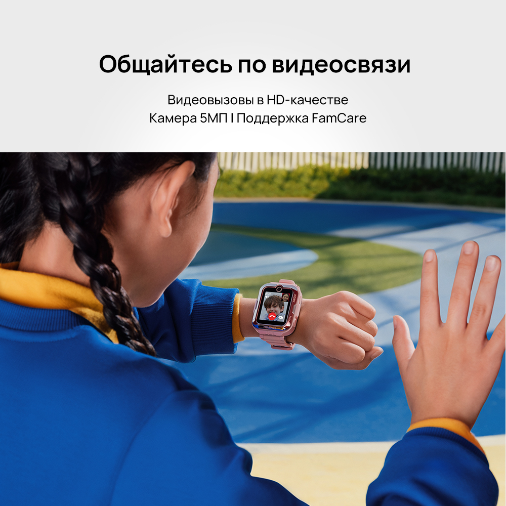 Высокий уровень водонепроницаемости6 причин выбратьHUAWEI WATCH KIDS 4 ProТочное определение местоположения на базе ИИПоддержка голосовых звонков 4G и видеовызовы в HD-качествеВодонепроницаемость 5 АТММощная батарея и быстрая зарядкаРежимы тренировокФункция «Дружить»Видеовызовы в HD-качестве¹Общайтесь с ребенком по видеосвязиЧасы HUAWEI WATCH KIDS 4 Pro оснащены камерой 5 МП с высоким разрешением, благодаря которой вы можете общаться с ребенком по видеосвязи. Умные часы позволяют всегда оставаться на связи и быть в курсе, где ваш ребенок и чем он занимается. Ребенок может позвонить вам в любое время. HUAWEI WATCH KIDS 4 Pro также поддерживают выполнение вызовов с помощью приложения HUAWEI MeeTime³.Стабильный сигналВсегда оставайтесь на связиПоддержка 4G VoLTE⁵ и разработанный Huawei алгоритм интеллектуальной сети, повышающий стабильность сигнала и снижающий энергопотребление, обеспечивают высокое качество связи. Осуществляйте голосовые вызовы и общайтесь по SMS⁴. Благодаря поддержке функции роуминга вы также можете оставаться на связи с ребенком во время путешествий.*Поддержка функции VoLTE-вызовов зависит от параметров сети оператора связи. Изображение приведено для справки.Точное определение местоположения на базе ИИ