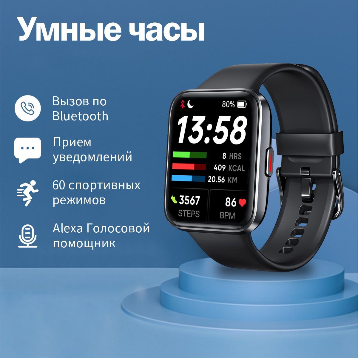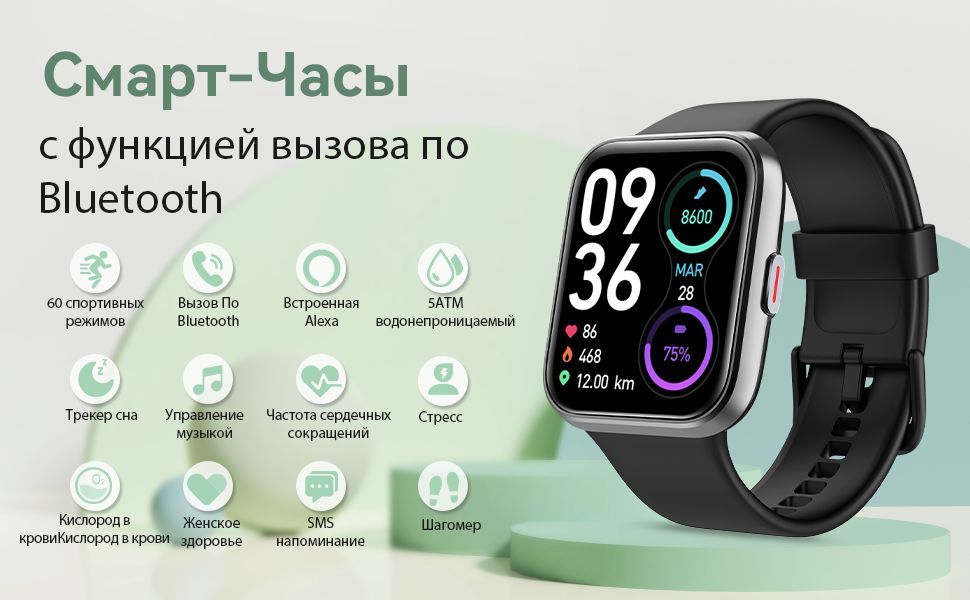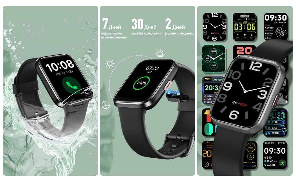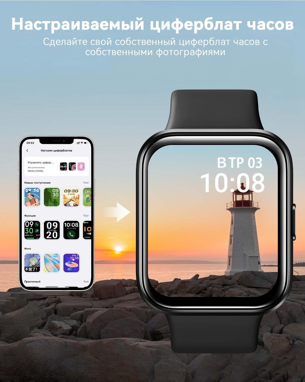 Встроенные датчики: Датчик движения, Счетчик калорий, Датчик уровня кислорода в крови