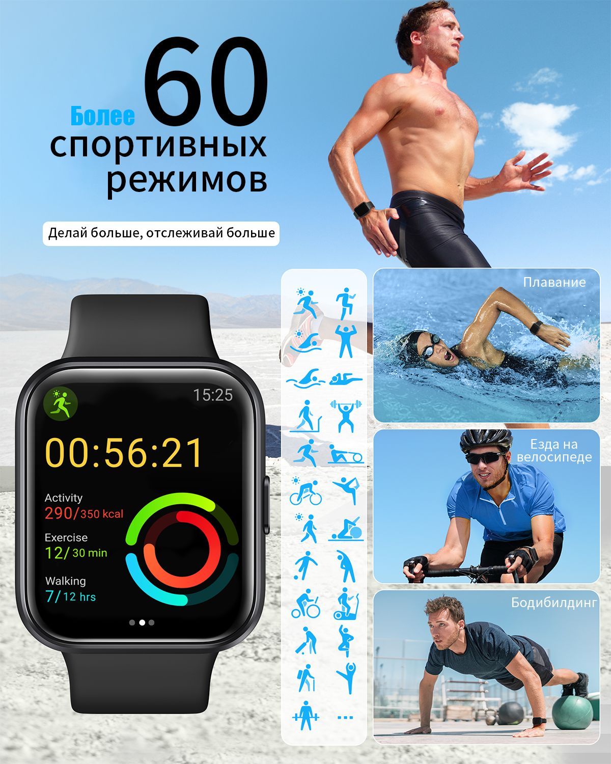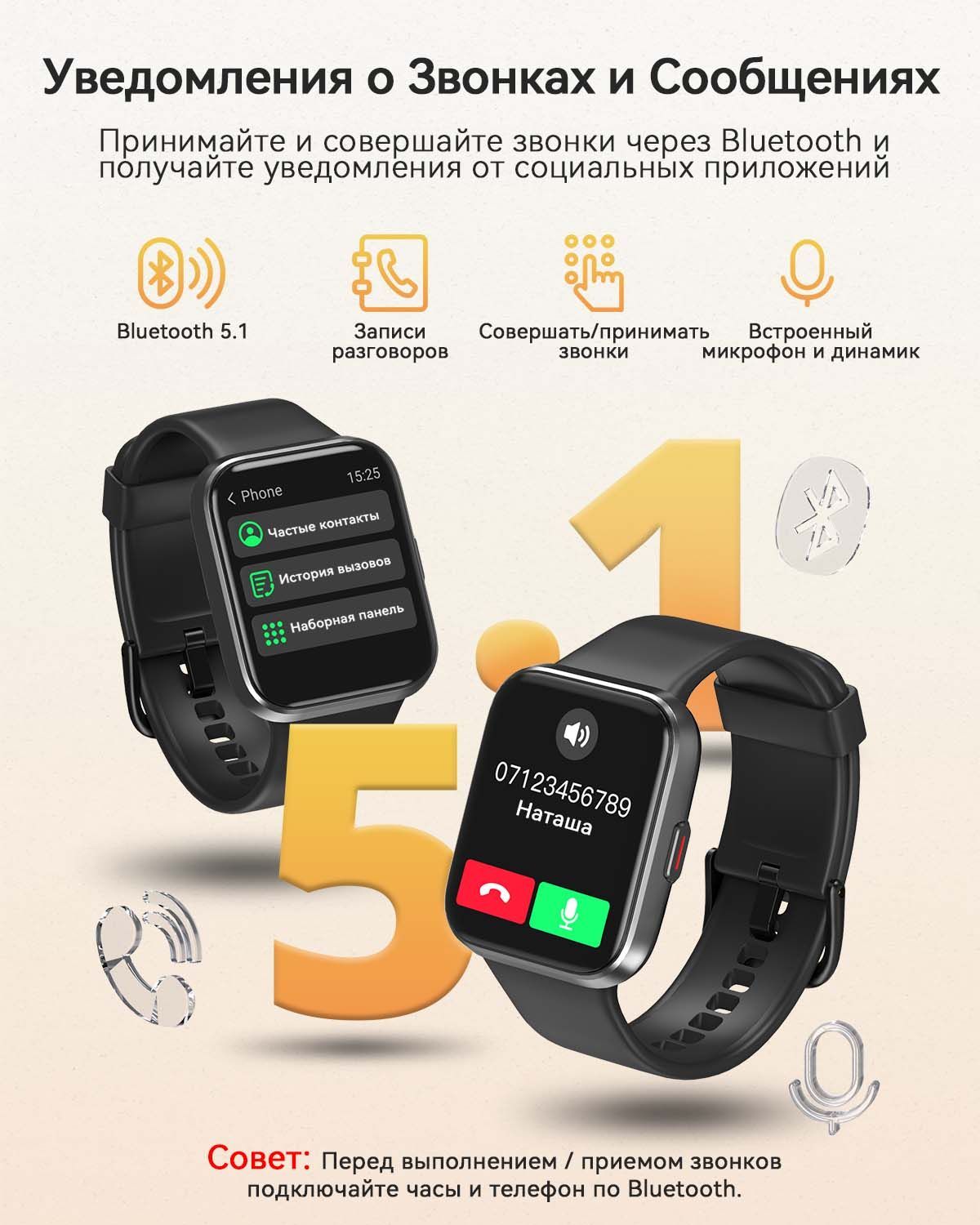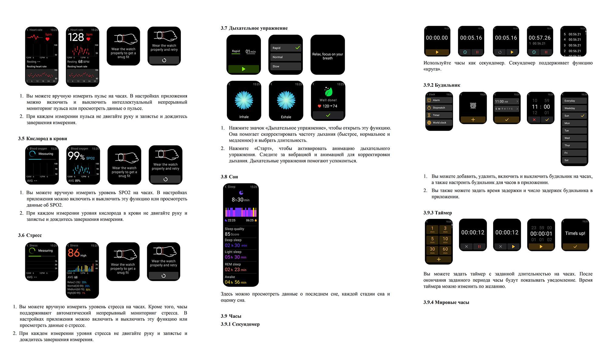 Встроенные датчики: Датчик движения, Счетчик калорий, Датчик уровня кислорода в крови