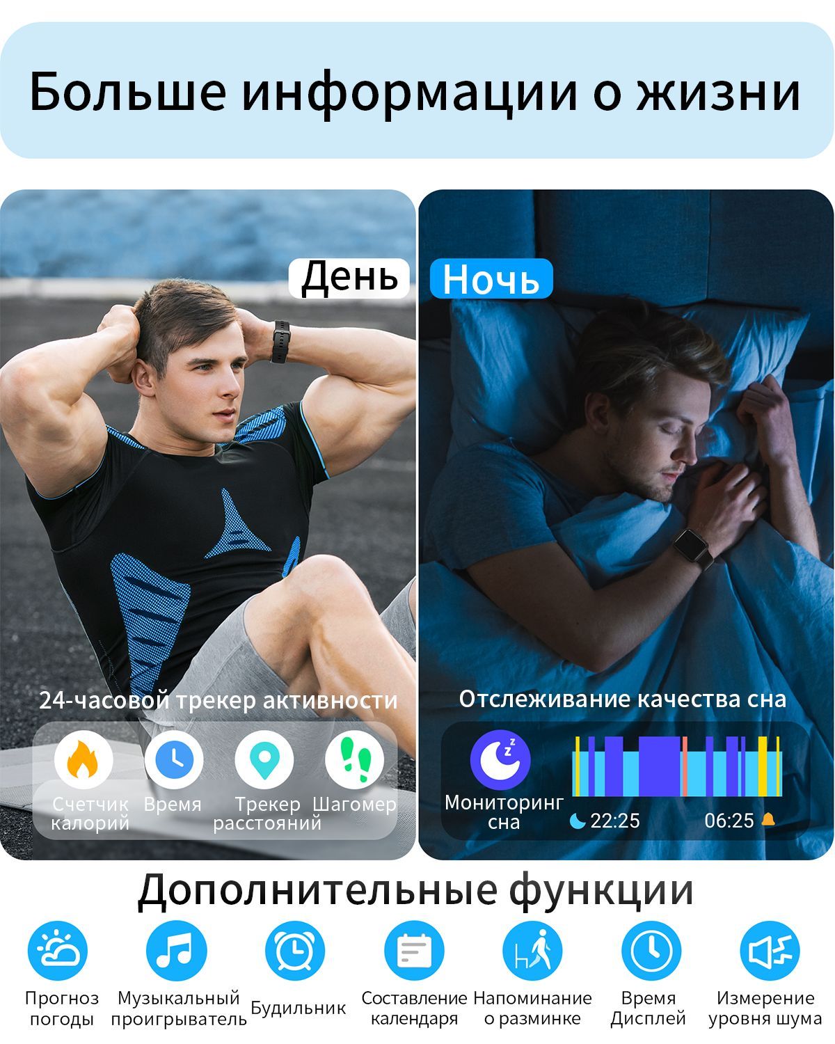 Мониторинг Гидратации, Сердечного ритма, Сна, Усвоения калорий