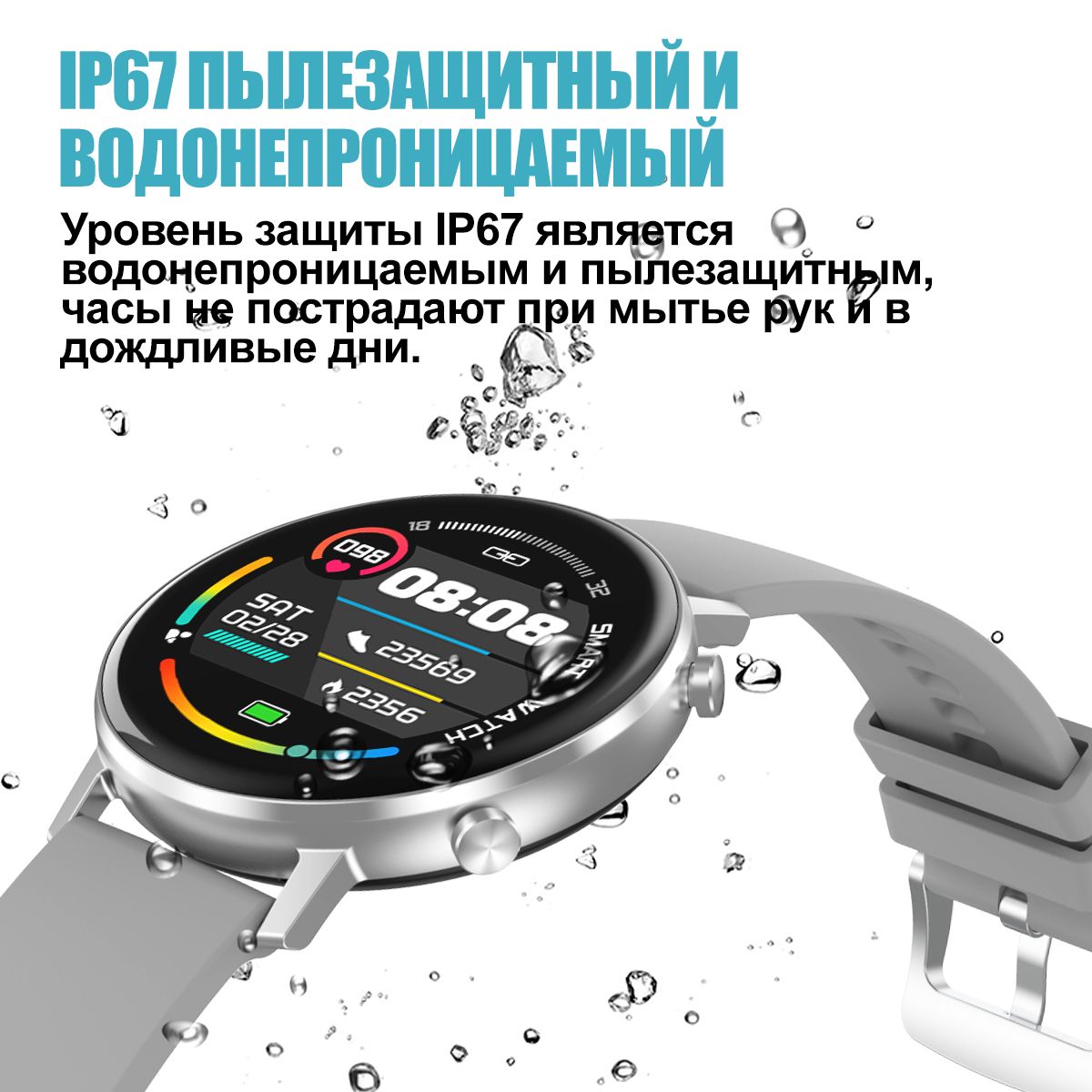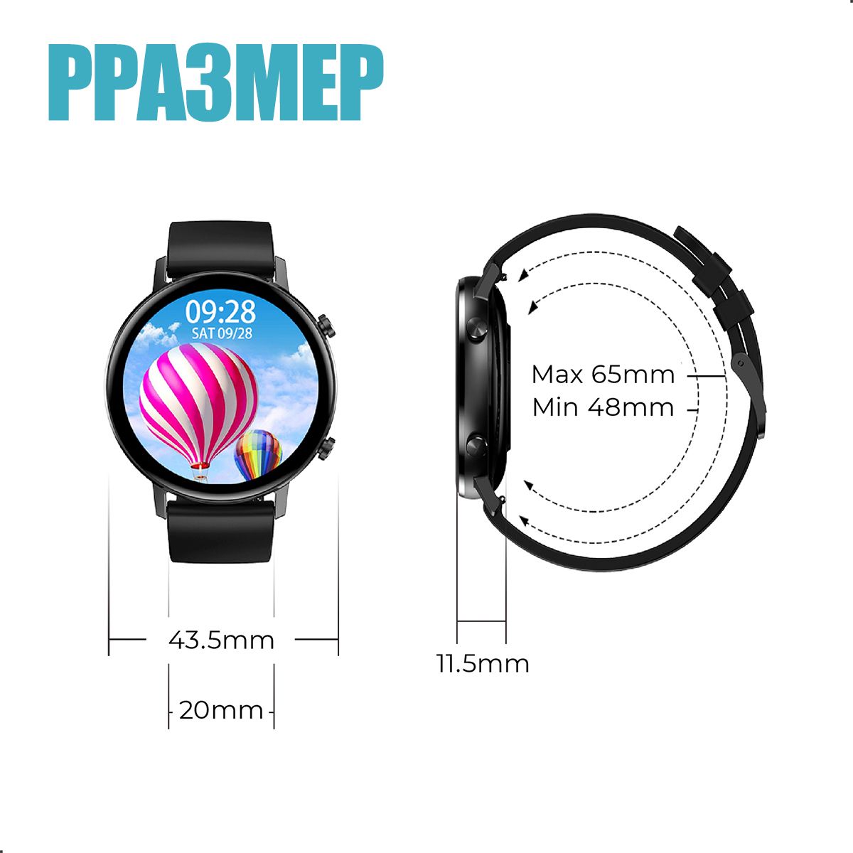 Умные часы KEMET DT2+ силиконовый черный, 43mm, серебристый