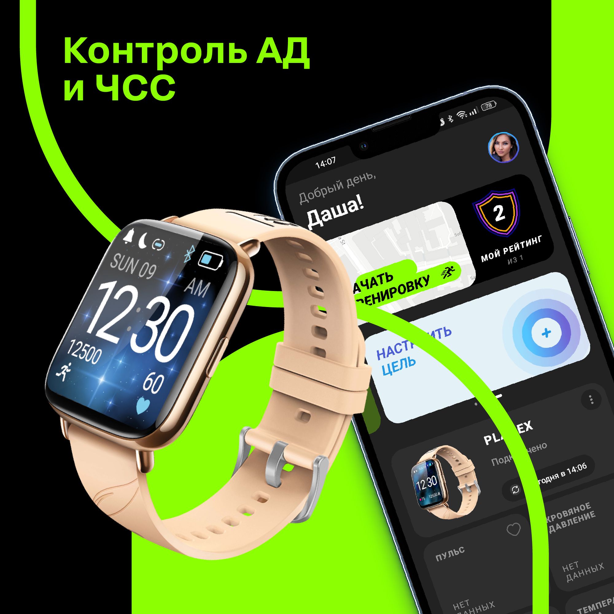 Мониторинг: Усвоения калорий, Сердечного ритма, Сна, Физической активности