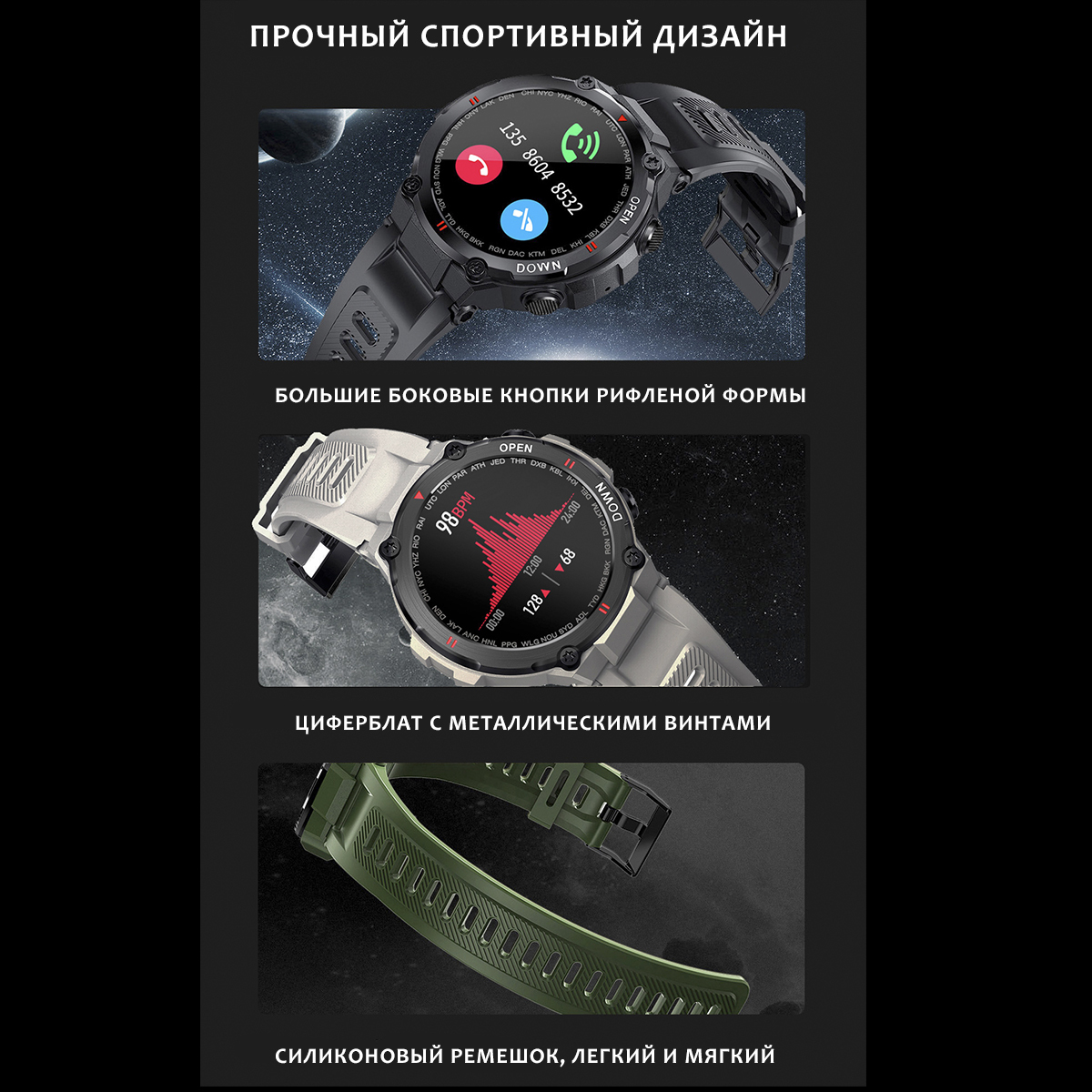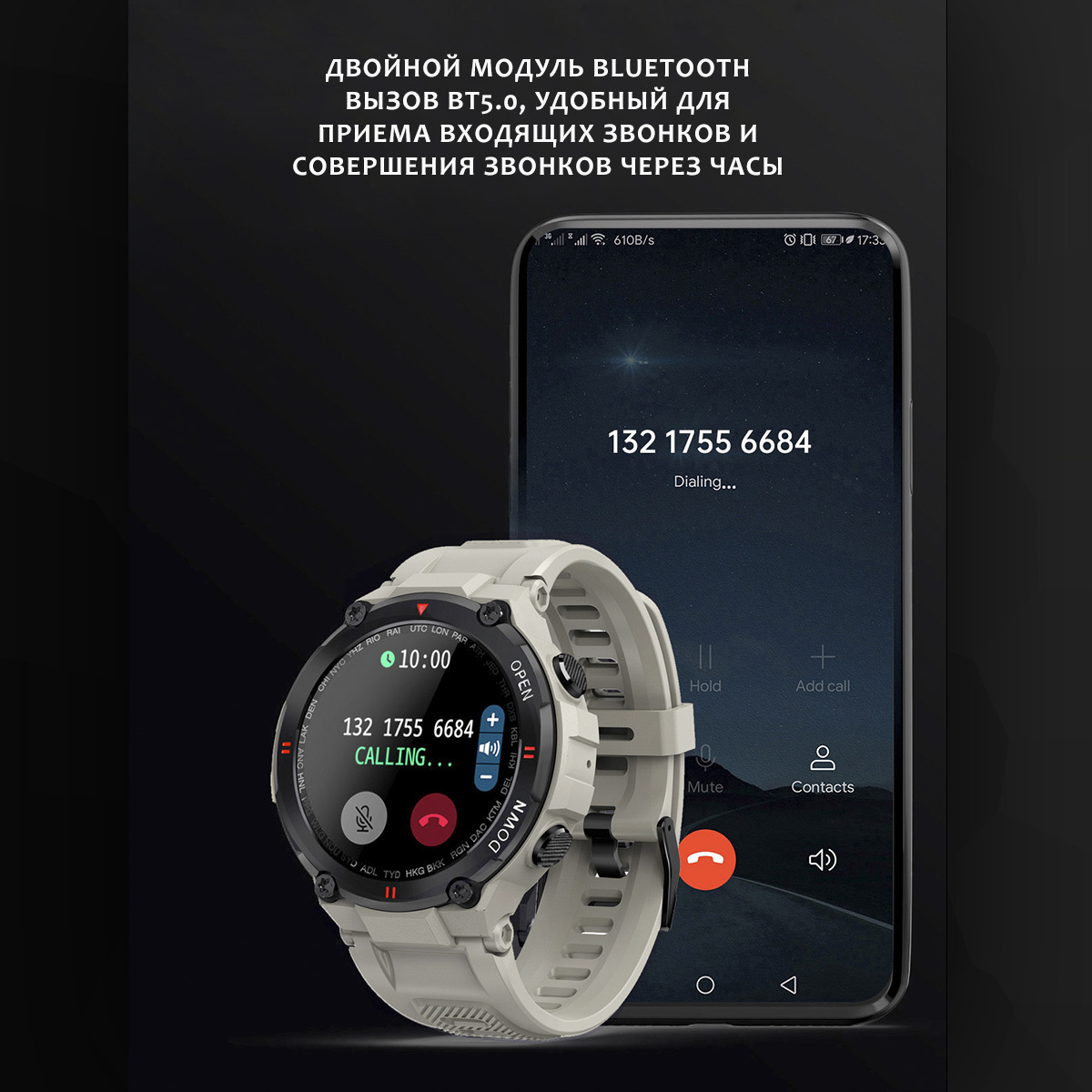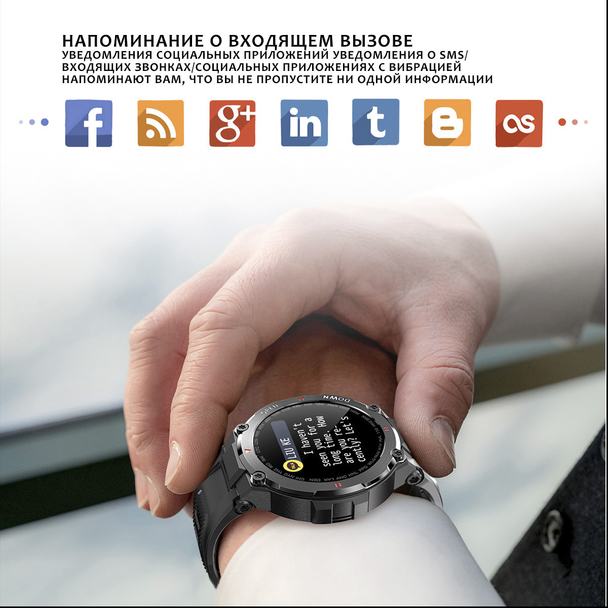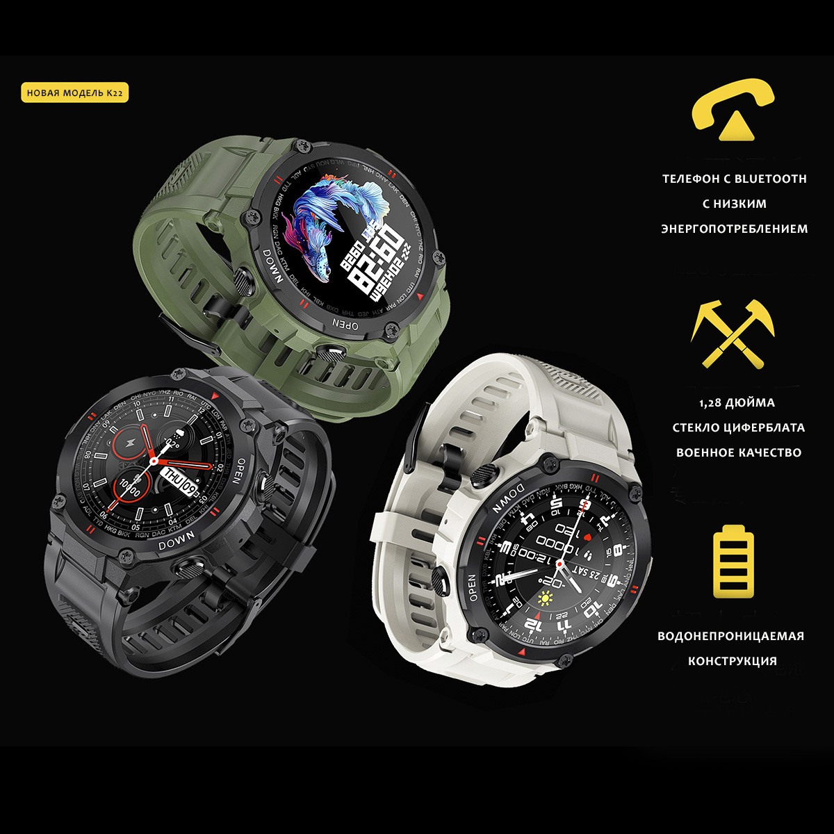 Описание: LEMFO K22 - брутальные смарт часы в круглом влагозащищенном корпусе для мужчин, мужские спортивные фитнес-часы с Bluetooth, управлением музыкой для iOS Android.