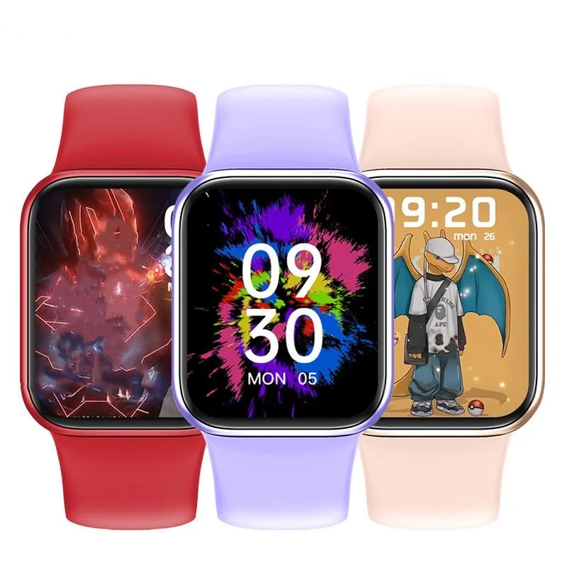 Имеют квадратный циферблат, который выглядит стильно, модно и подходит как для мужчин, так и для женщин. Размер - 44 мм * 37.9 мм * 13.5 мм и весом около 50 г. Боковая кнопка может выполнять такие операции, как перелистывание страниц, переключение интерфейса, увеличение/уменьшение масштаба и регулировка яркости. Обратная сторона устройства получила типовую конфигурацию – это магнитные контакты для зарядки и датчик сердечного ритма.