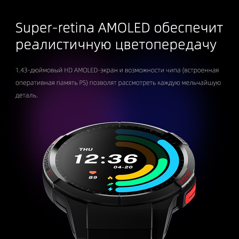 Описание: MiBro Watch GS - это стильные и элегантные часы, которые будут легко сочетаться с вашей повседневной одеждой. 1,43-дюймовый сенсорный Amoled-дисплей с разрешением экрана 466x466 обеспечит точную цветопередачу и четкое изображение. А легкий вес и приятная для кожи текстура обеспечит комфортное ношение.