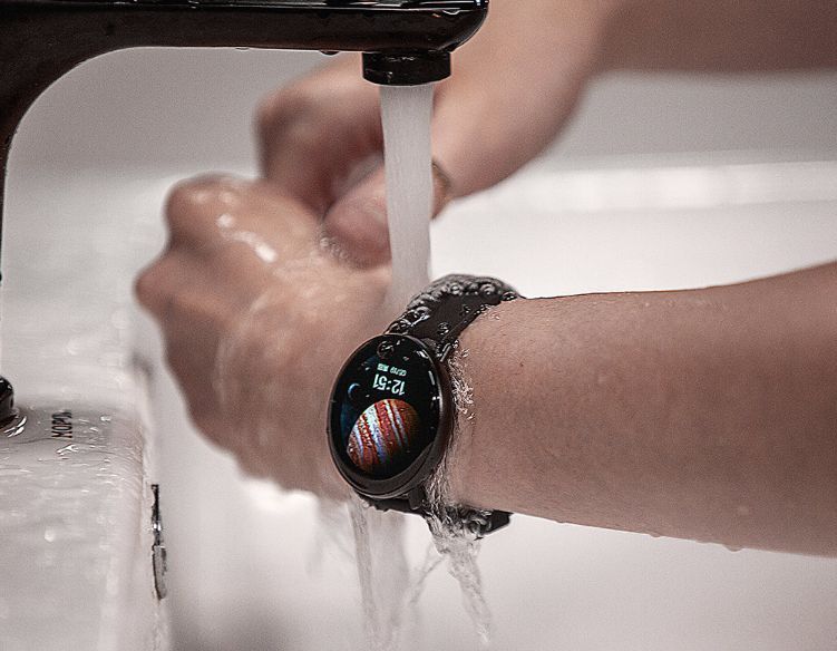 Корпус обладает защитой от воды. Вашим часам не страшны капли воды и пота.