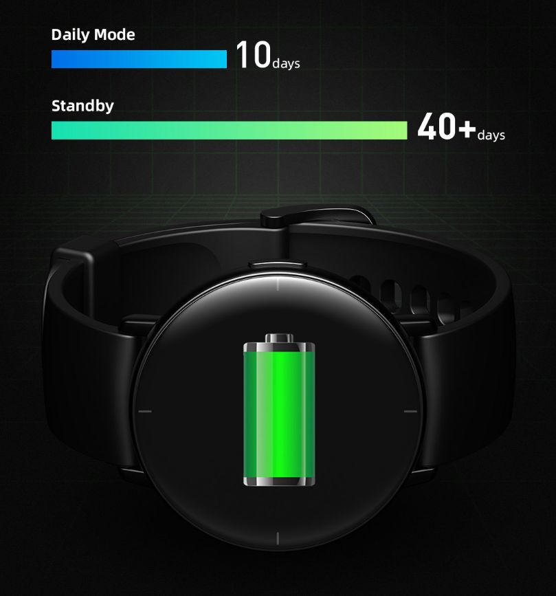 При использовании базовых функций устройства время его автономной работы составит 40+ дней, а при ежедневном пользовании – 10 дней, благодаря встроенному аккумулятору ёмкостью 230 мАч.