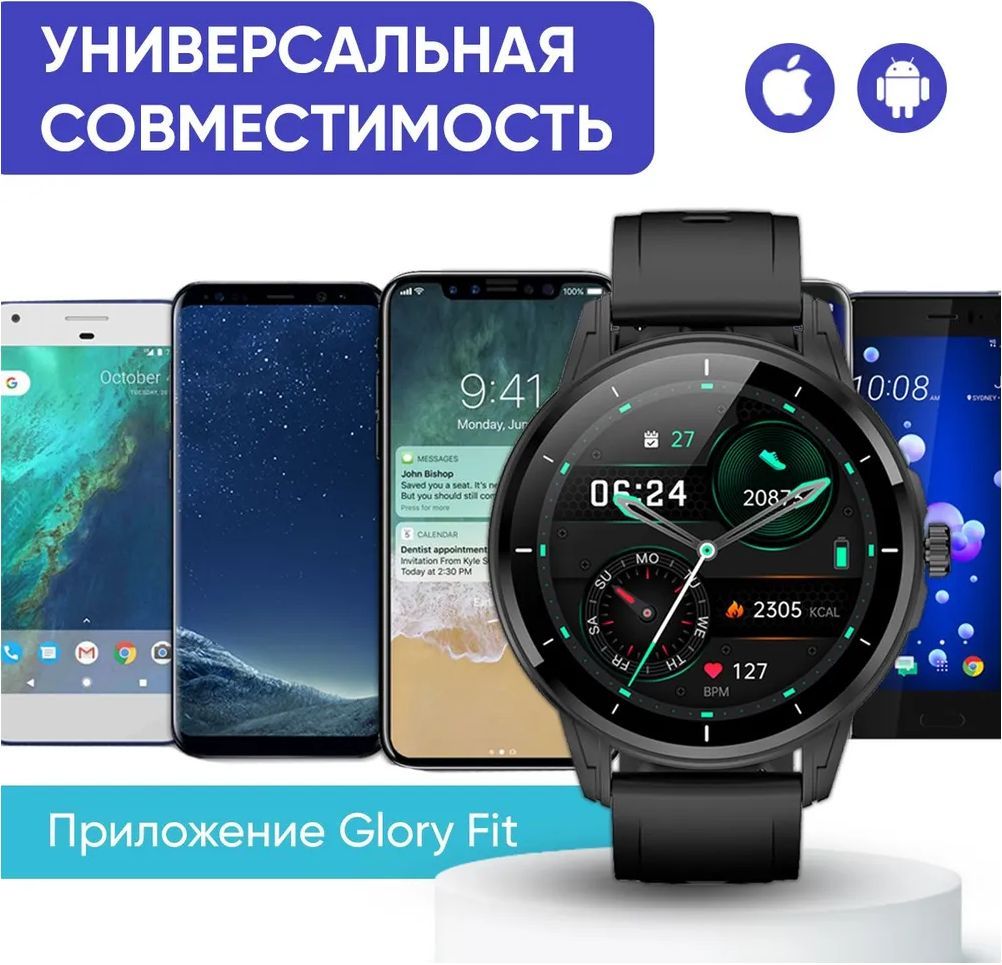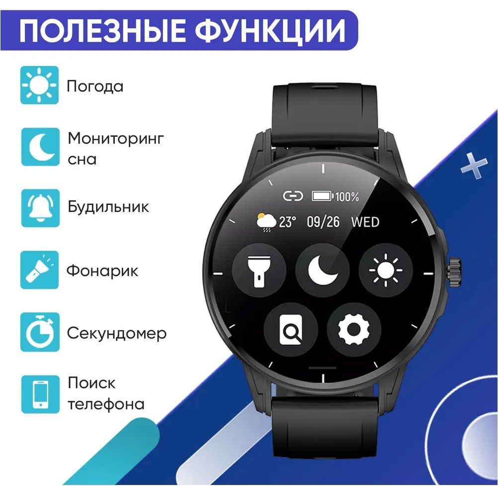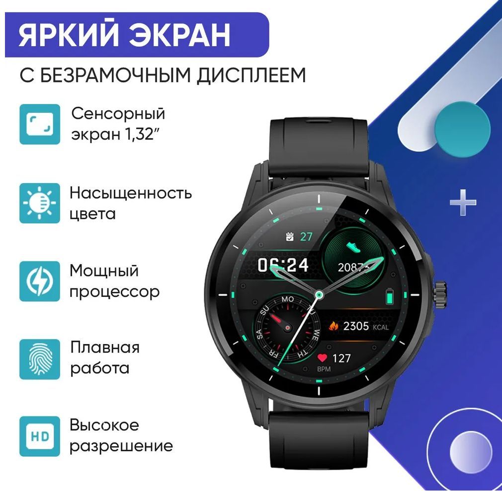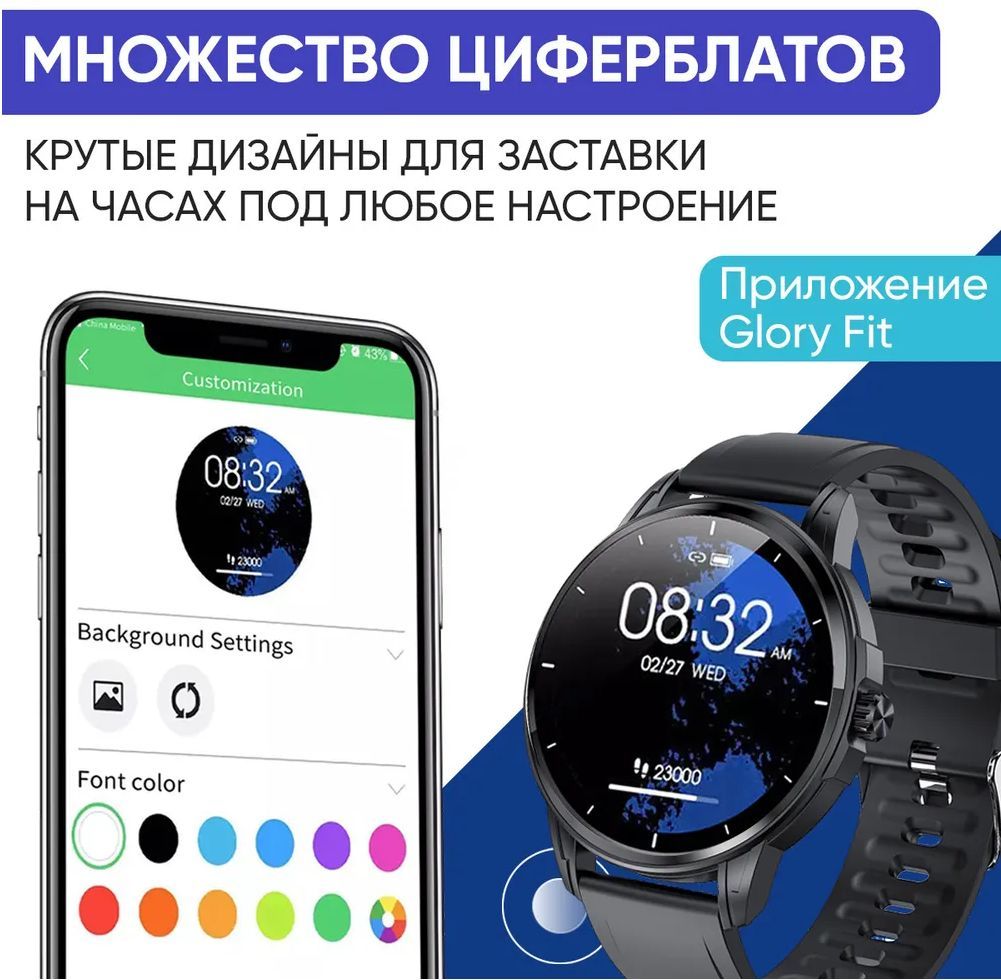 Описание: это не только стильный аксессуар, но и многофункциональный гаджет, который делает жизнь проще и комфортнее. Поскольку умный браслет выпускается с черным и бежевым ремешком, он хорошо подходит как для женщин и мужчин, так и для подростков – девочек и мальчиков. Ремешок изготовлен из эластичного и гипоаллергенного материала, поэтому не вызывает раздражения даже при длительном ношении. При этом стильные умные часы легко впишутся в любой образ, поскольку имеют утонченный и элегантный вид. При желании ремень можно сменить, процедура занимает считанные минуты. Наручные часы Smart Watch оснащаются 1,32 дюймовым экраном и энергоемкой батареей, поэтому могут длительное время работать без подзарядки аккумулятора – до 3-7 дней при активном использовании. Огромный выбор циферблатов позволяет выбрать оптимальный вариант или постоянно менять дизайн. Удобный интерфейс позволяет легко и быстро переключать режимы, использовать по максимуму функционал. Мощный процессор обеспечивает высокую скорость работы и обработку данных. Сенсорные ручные круглые часы обладают универсальной совместимостью, благодаря которой к часам подходят все устройства версии Android (андроид) 4.4 и IOS 9.0 и выше. Смарт часы для детей и взрослых легко синхронизируются со смартфоном через Bluetooth после установки приложении «Glorifit». Благодаря этому, пользователь видит входящие сообщения или звонки не только на телефоне, но и на своих часах (функции NFC и GPS нет). Эта функция удобная людей, которые занимаются фитнесом, бегом, спортом или другими активными действиями. Также через женские, мужские, детские электронные смартчасы на руку можно управлять аудиоплеером (музыкой) и камерой. К тому же цифровые спортивные вотч могут использоваться как трекер для спорта. Они помогают следить за здоровьем при помощи встроенных датчиков, которые измеряют пульс, артериальное давление, сатурацию, кислород в крови, частоту сердечных сокращений, а также считают потраченные калории. Кроме этого, электроника smart воч отслеживает качество сна, активности, погоду, менструальный цикл, а также имеет встроенный шагомер, календарь, таймер, будильник и секундомер. Фитнес браслет имеет множество спортивных режимов для удобства применения вне зависимости от физических нагрузок и прочих факторов. Влагозащита IP67 надежно защищает экран от внешнего воздействия, что позволяет использовать туристические водонепроницаемые часы телефон во время бега или активных игр. Устройство не является медицинским прибором.