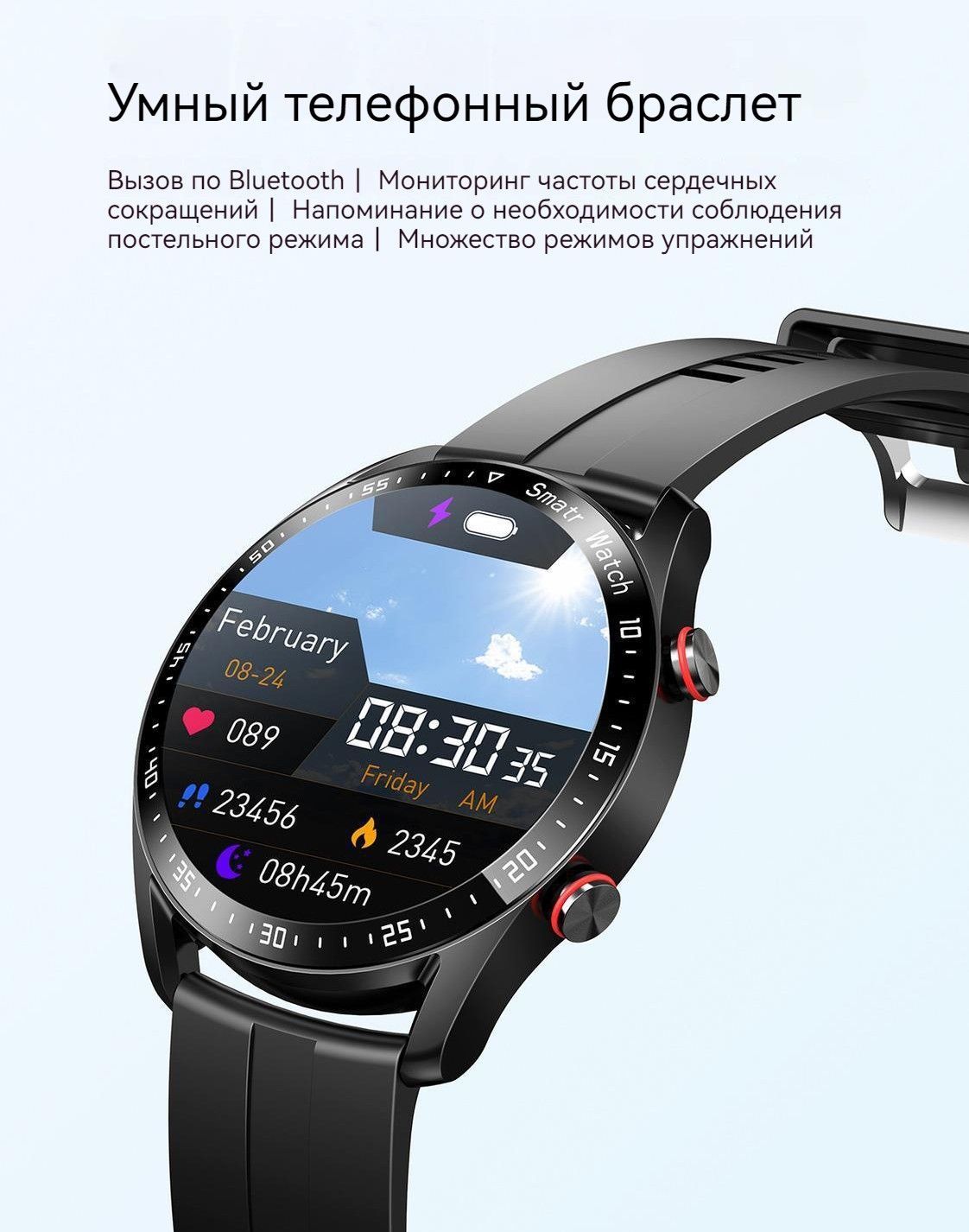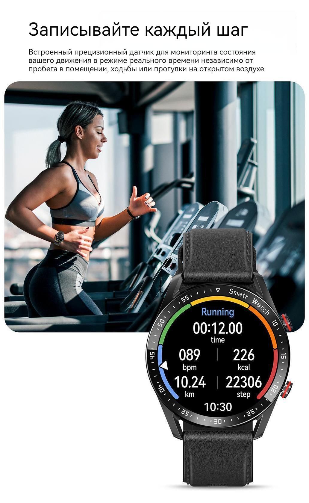 Умные часы NEXOVA Смарт-часы NEXOVA/вызов по Bluetooth/ЭКГ+PPG/мониторинг сна/шагомер QC6055, 46mm, Черный
