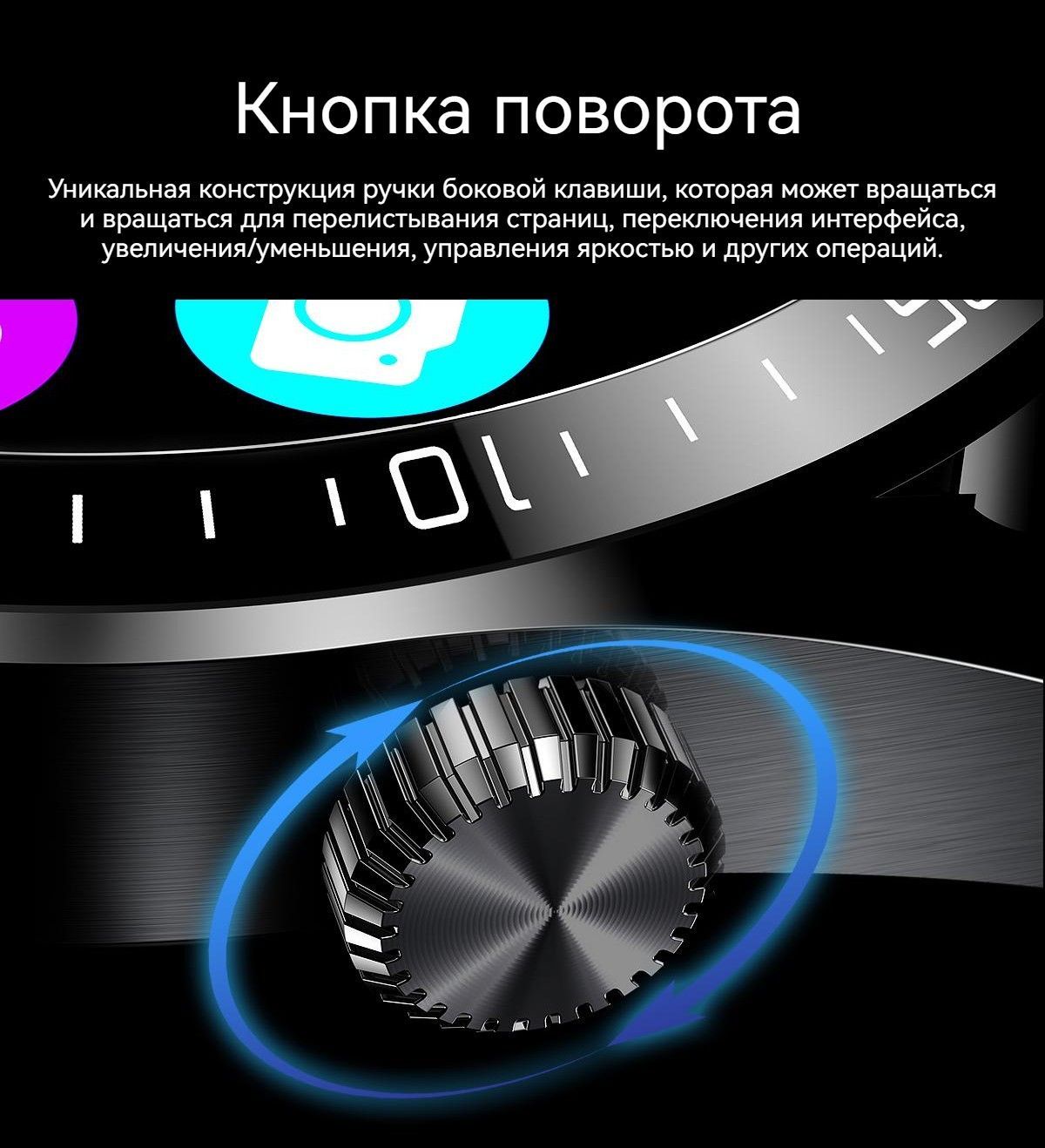 ✅ Аккуратно поворачивайте заводную головку, чтобы переключать приложения меню, листать страницы и регулировать громкость.